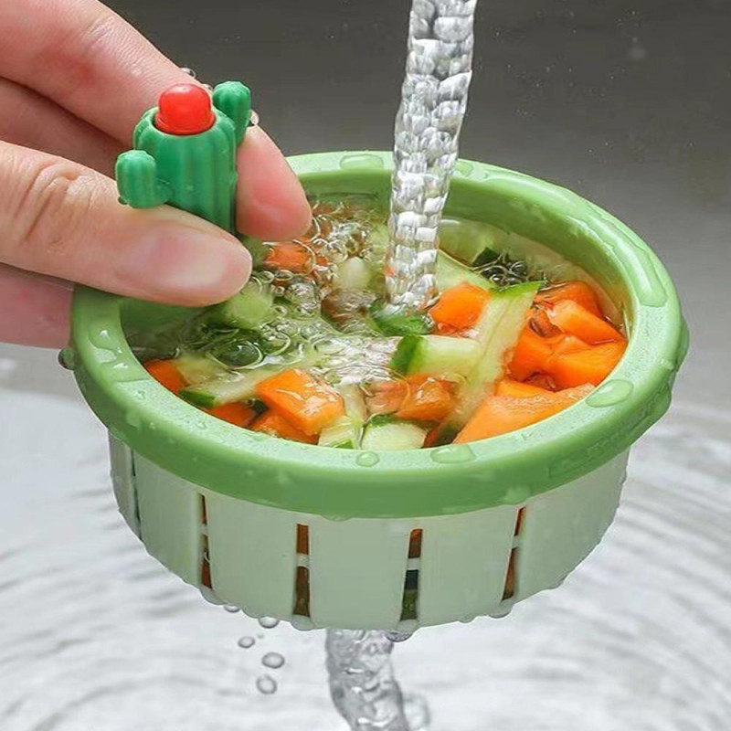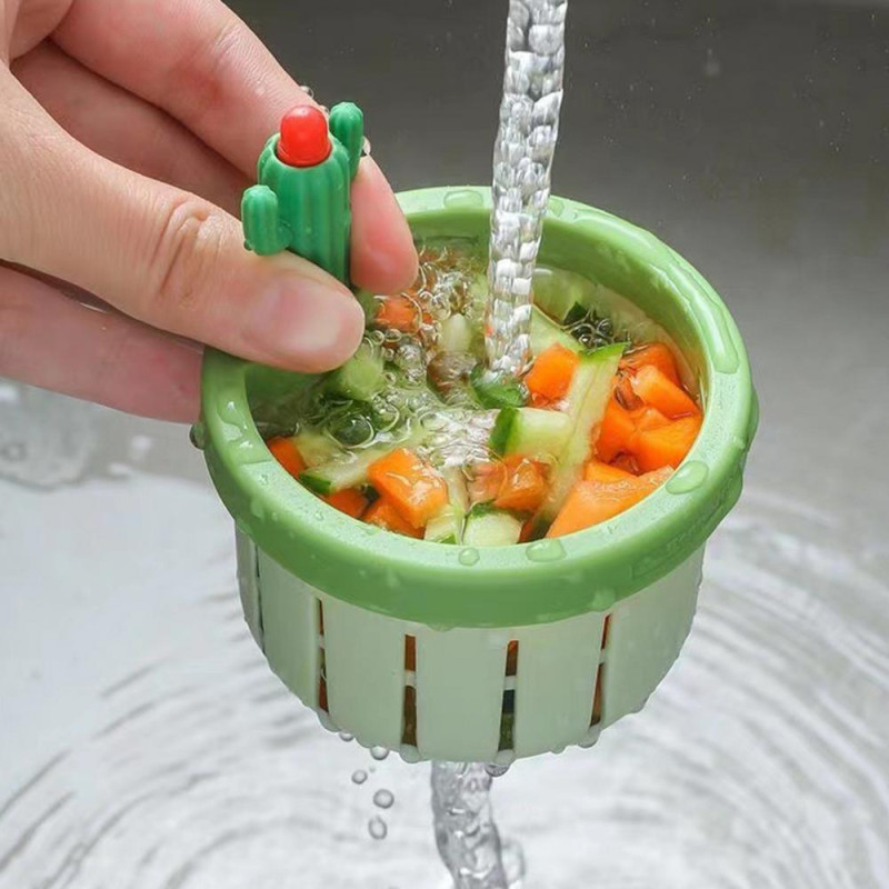 Description: Introducing the Multifunctional Household Cactus Sink Drainage Basket Strainer Lifting Basket! This sink strainer basket doubles as an excellent food waste collector filter. The unique cactus design serves as a convenient handle for effortless removal and waste filtering, keeping your hands clean. Featuring more drainage holes and a rotating drainage design, this basket ensures efficient water flow while preventing clogs. Say goodbye to kitchen sink clogs with the Home Cactus Press Automatic Pour Basket Strainer. Easy to install, simply place it over the drain opening for a secure fit. Keep your sink clean and free of large-capacity kitchen waste with this innovative solution. Experience the convenience of the Cactus Kitchen Sink Drain Strainer. Just gently press the cactus head, and watch as all the food particles inside the filter disappear like magic! This self-cleaning strainer is a must-have for every kitchen sink, ensuring a hygienic and hassle-free cooking experience. Upgrade your kitchen with the multifunctional home-use cactus sink draining basket Its versatile design allows for easy waste collection and disposal, thanks to the cactus tentacles that double as handles. With enhanced draining capabilities and a user-friendly rotating design, this basket is a game-changer for any kitchen.
