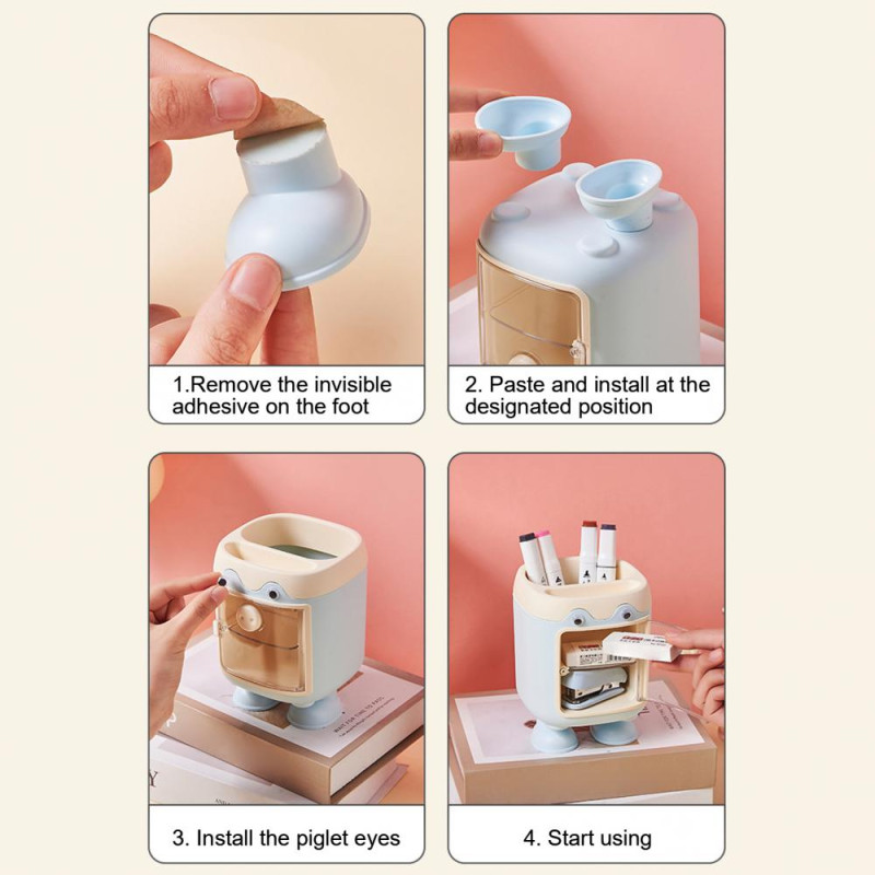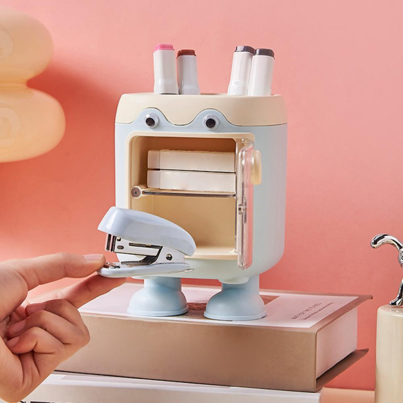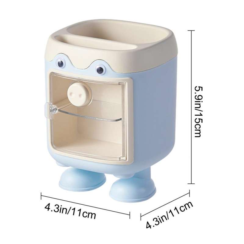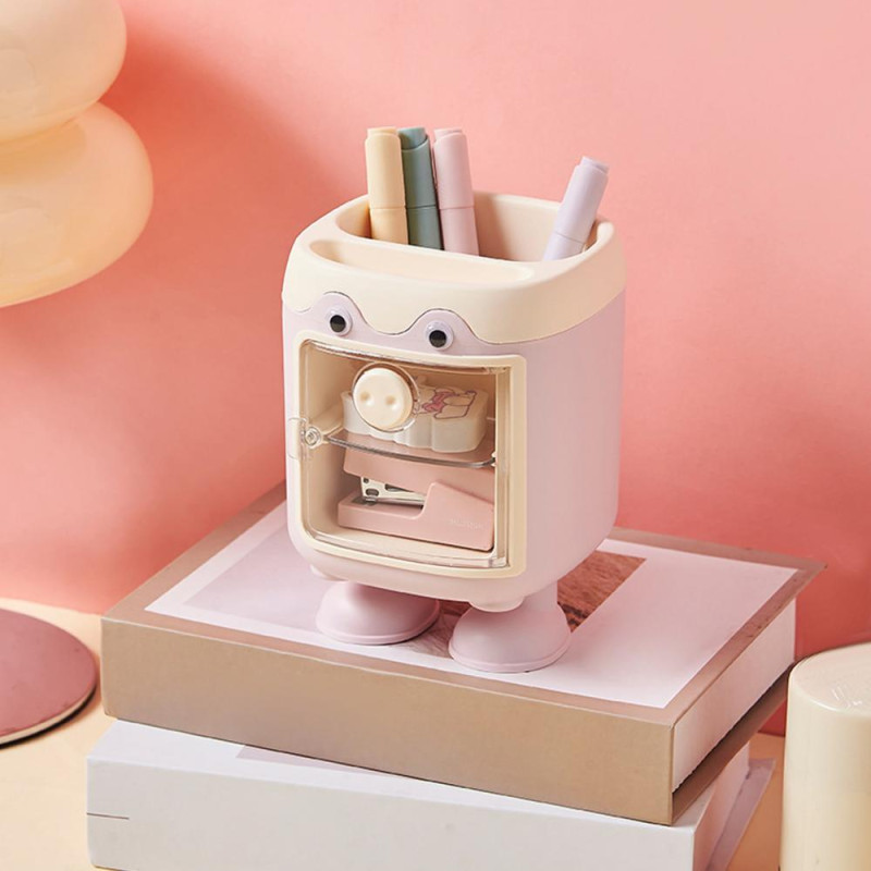 Description: Enhance your workspace with this reliable and durable desk organizer. Crafted from high-quality materials, it ensures long-lasting use without easy damage. The super practical storage design features a top slot for pens and a small drawer for organizing stationery like paper clips and notes, keeping your desk clutter-free and organized. Its cute doll-like design with big eyes and soft colors adds a touch of charm to your workspace, creating a lively and engaging environment. The compact size is perfect for any desk or bookshelf, optimizing space while providing easy access to essentials. Ideal for students or as a thoughtful gift for colleagues, this pen holder combines functionality with adorable aesthetics.