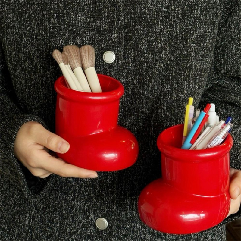 Cute Boot-Shaped Storage Box Large Capacity Organizer for Makeup Brushes Pens Decorative Desktop Decor for Home Office