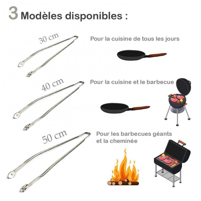 Item Name: BBQ Tongs Material: 304 Stainless Steel Style: Modern And Simple Color: Silver Features: Multi-functional, Anti-slip, High Temperature Resistant, Anti-rust, Anti-scalding Size Details: 50 cm, Length: 50cm/19.69" (Approx.) 30cm, Length: 30cm/11.81" (Approx.) 40cm, Length: 40cm/15.75" (Approx.)