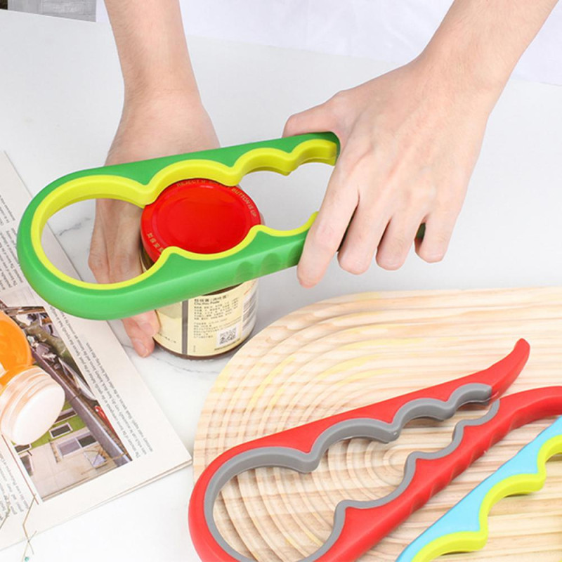 Versatile 4-in-1 Design: Ergonomically crafted with four different bottle cap grips, this bottle opener ensures a secure hold on various jar and bottle caps. From small to large lids, its multiple jaw sizes cater to diverse containers, making it a must-have for effortless opening tasks.