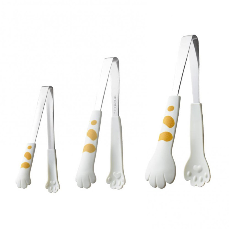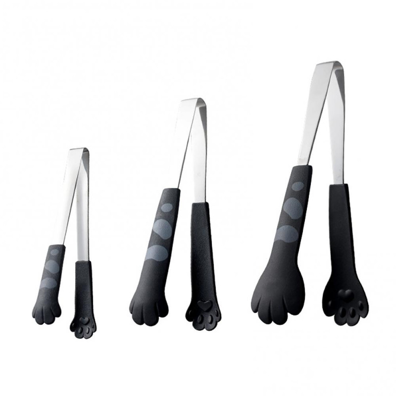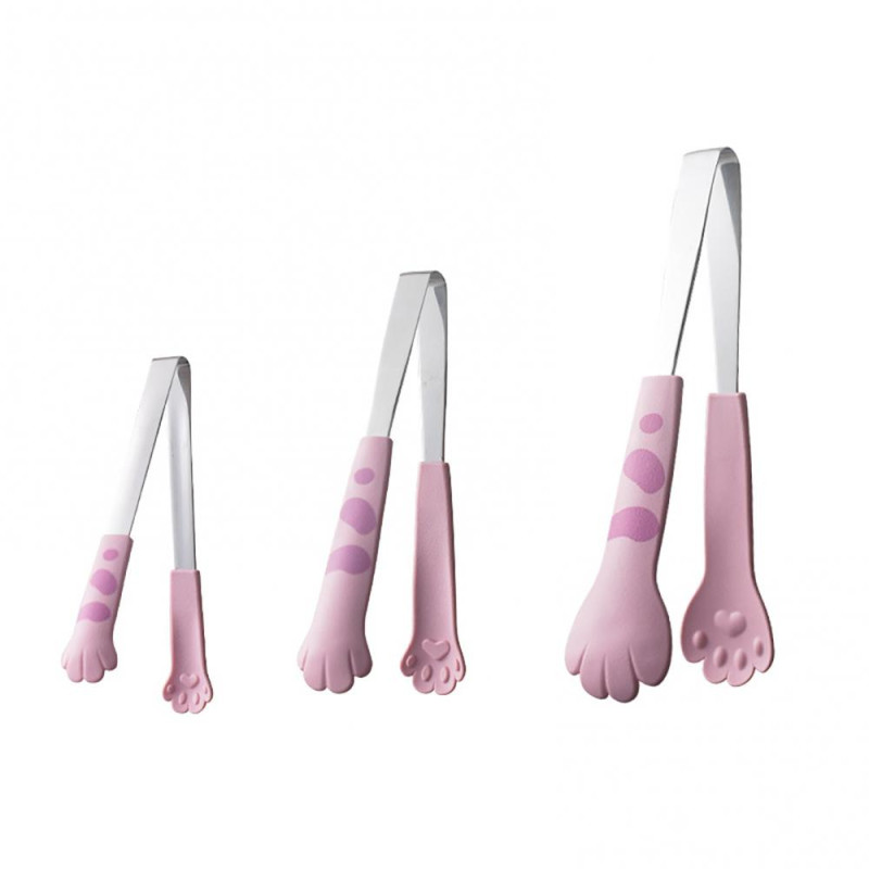 3Pcs/set Kitchen Tongs Stainless Steel Cartoon Cat Paw Shape Bread Tongs Heat-Resistant Non-Slip Handle Pliers Cooking Tools