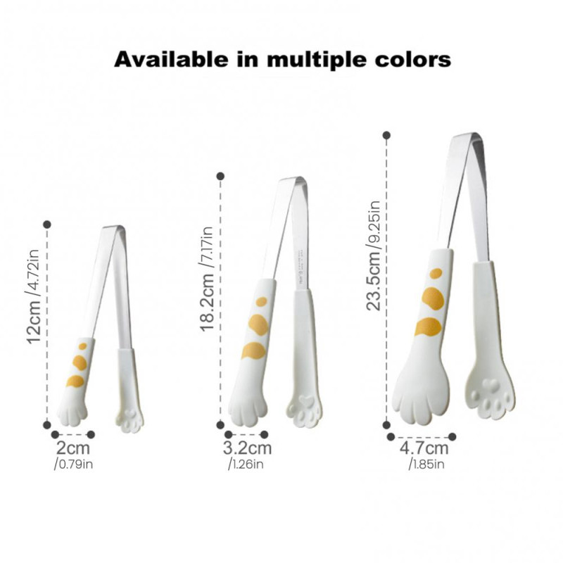 Item Name: Bread Tongs Material: PP, Stainless Steel Features: Cat Claw Design, Versatile Application, Durable Construction Size Details: S: 12cm x 2cm/4.73" x 0.79" (Approx.) M: 18.2cm x 3.2cm/7.17" x 1.26" (Approx.) L: 23.5cm x 4.7cm/9.26" x 1.85" (Approx.)
