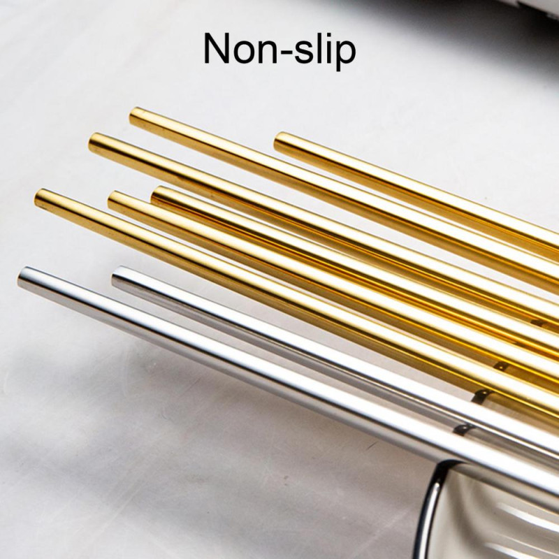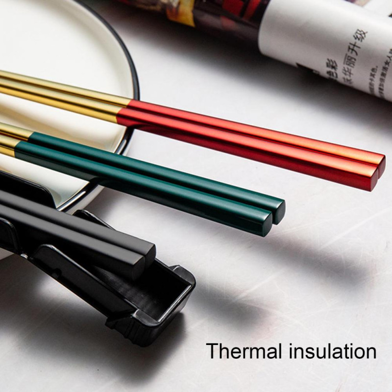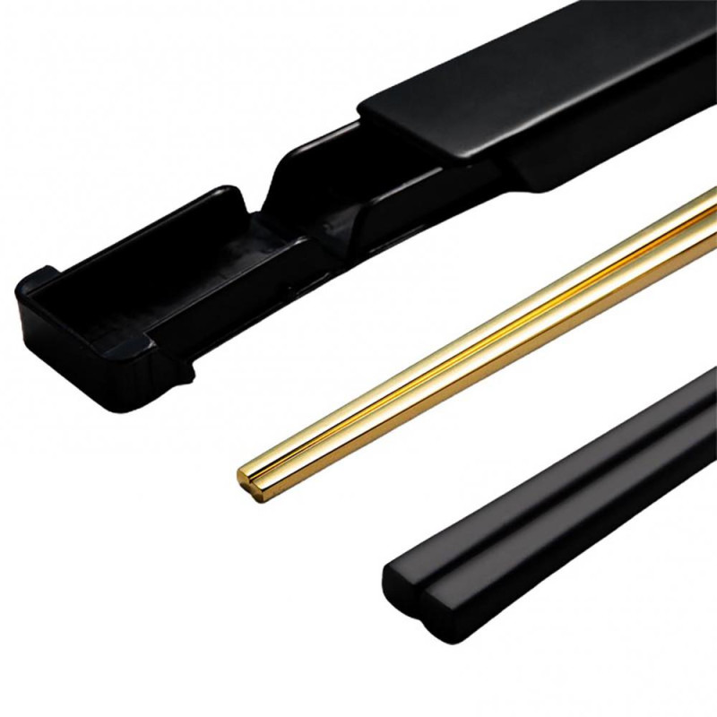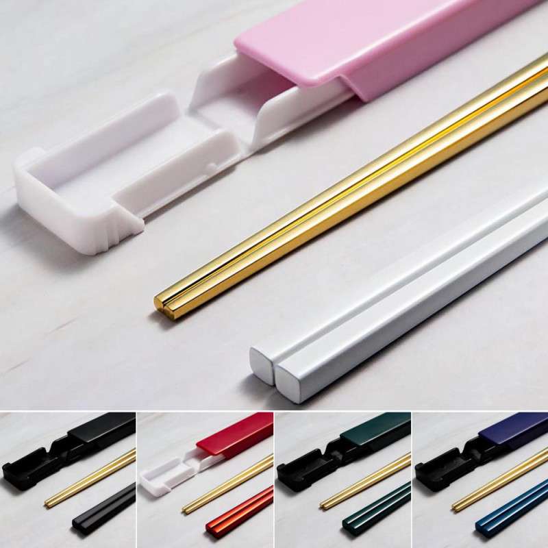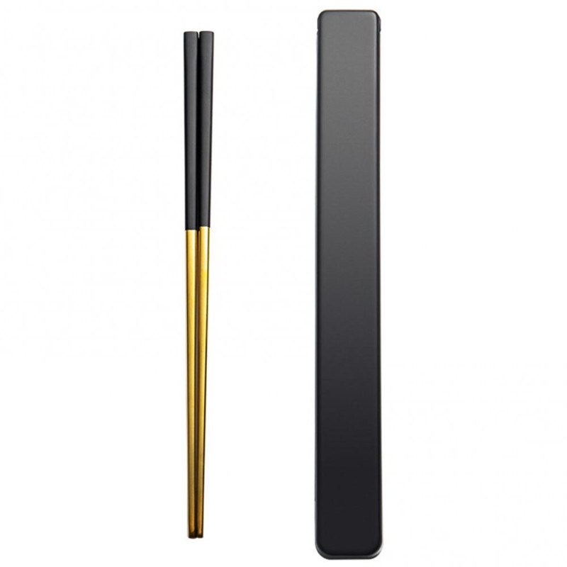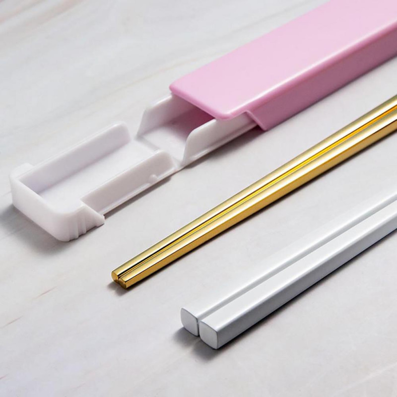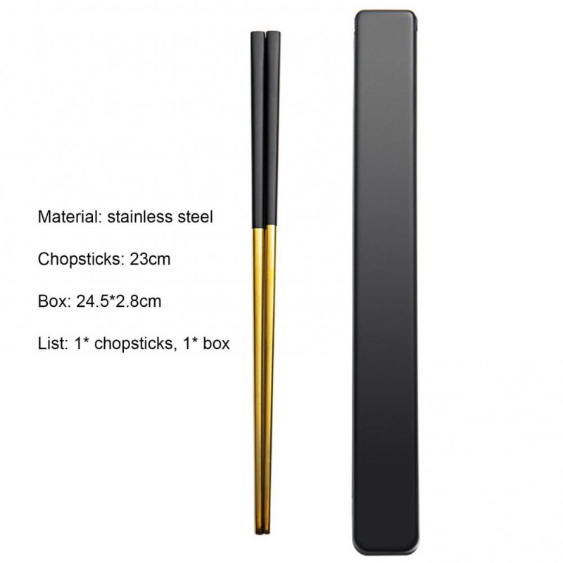 1 Set Stainless Steel Chopsticks with Case Reusable Easy to Clean Rustproof Non-slip Eating Dishwasher Safe Lunch Chopsticks Dinnerware