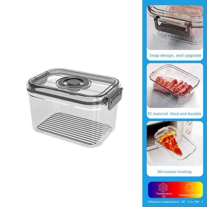 Description: Introducing our large capacity bread box, the perfect solution for storing various types of bread such as bagels, pound cakes, muffins, and sandwich bread. With its spacious design and large opening, accessing your favorite baked goods has never been easier. This sealed bread container features a high-quality silicone seal strip and 2 sturdy buckles to ensure a tight seal, keeping your bread freshness for longer periods. The air valve on the lid allows you to adjust the intake amount, preserving the deliciousness of your bread over time. Equipped with a convenient timed recording dial, our bread box enables you to accurately track the storage time of your food. Never miss the optimal storage period again with this innovative feature that displays the storage month and date. Crafted from food-grade material, our Bread Saver is made of thickened PET that is BPA-free and durable. The grey transparent design provides a clear view of your food items while adding an organized touch to your kitchen counter. Versatile and practical, this multipurpose bread box is ideal for storing not only bread but also fruits, vegetables, and cereals. The removable drain trays help to drain excess moisture from fruits and vegetables, extending their freshness and reducing food waste.