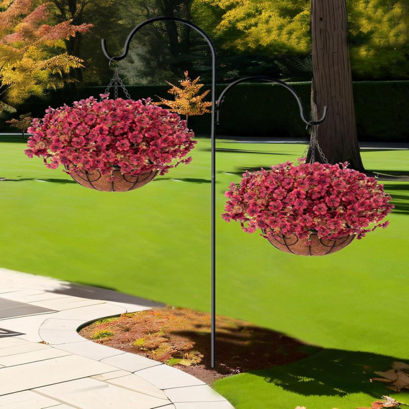 Realistic Design: Handmade from silk petals and soft plastic stems, these artificial flowers boast a lifelike appearance, perfect for enhancing your home, garden, or balcony with a touch of natural beauty. Low Maintenance: Say goodbye to watering, trimming, or replacing flowers! Enjoy the everlasting charm of these faux silk flowers in your garden, courtyard, or living room without the hassle of upkeep, ideal for those leading a busy lifestyle. High-Quality Materials: Crafted from premium materials, each artificial flower closely resembles its real counterpart, featuring authentic petal and leaf textures. UV-resistant and designed to bloom year-round, these flowers offer lasting elegance. Versatile Decor: Whether adorning your front porch, walkway, terrace, patio, garden pots, window frames, or hanging baskets, these artificial flowers serve as multi-functional decorations. Bring their beauty indoors to grace tabletops and shelves with style. Adjustable Height: Easily customize the rod height of these realistic artificial flowers to suit any planting arrangement. Their adaptability ensures seamless integration into various settings while maintaining a charming and authentic aesthetic.