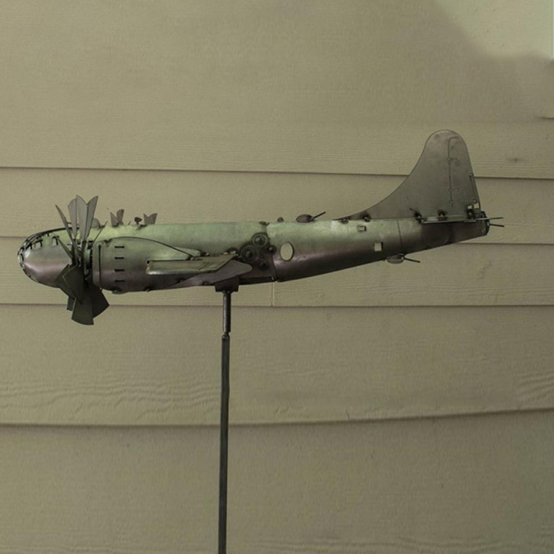 Airplane Windmill Exquisite Shape Rust-proof Metal Airplane Windmill Decorative Aircraft Spinner Garden Stake Birthday Gift