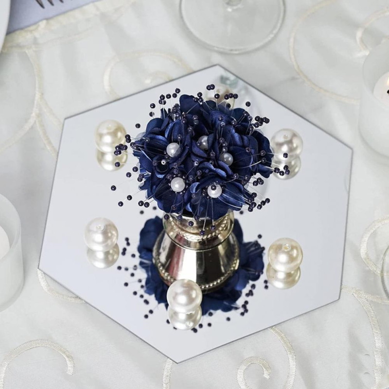 A simple style mirror tray is what it can offer you, and it can add beauty to your table with or wedding because of its geometric elements design, such as hexagon, square and so on.