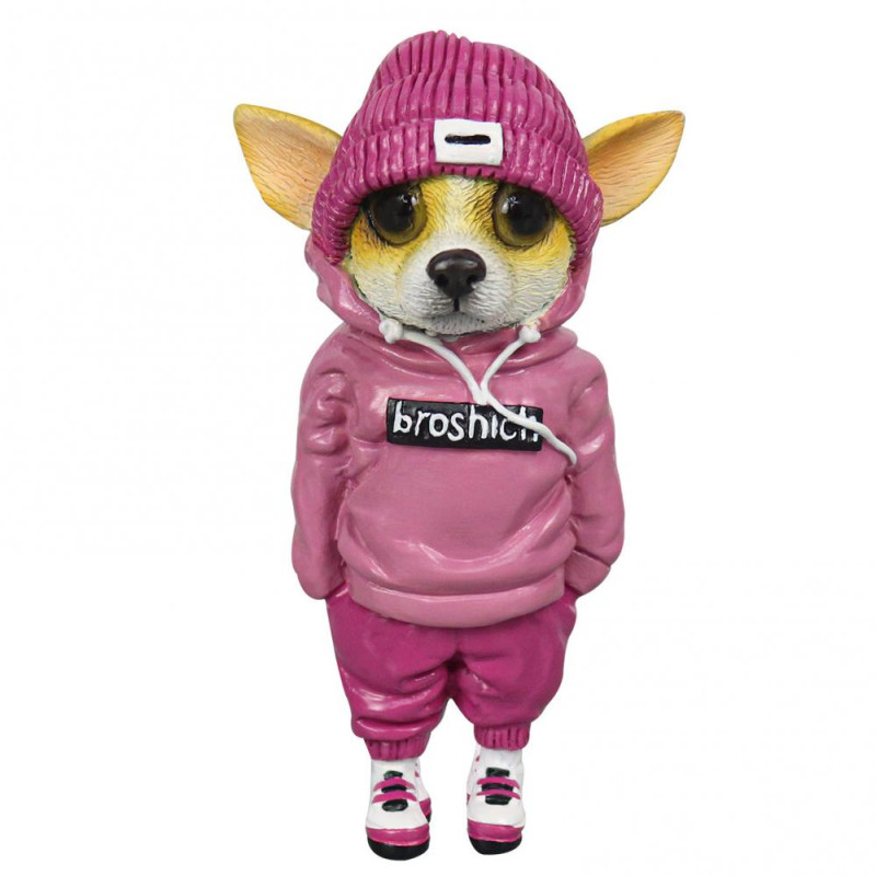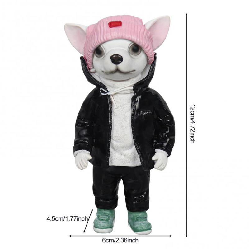Item Name: Dog Statue Material: Resin Style: Cartoon Style Features: Dog Shape, Wearing Sweatshirt, Versatile Size Details: L: 6cm/2.36", W: 4.5cm/1.77", H: 12cm/4.72" (Approx.)