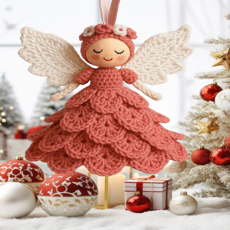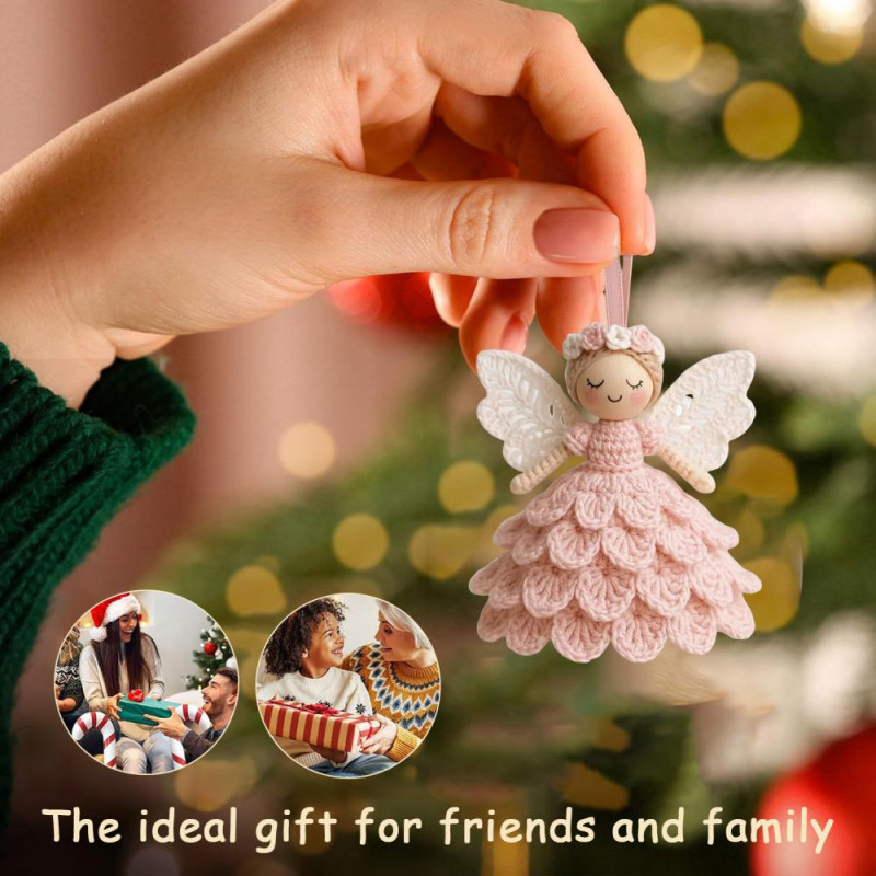 1/2 Sets DIY Crochet Angel Ornament Kit Beginners Handmade Angel Girl Decoration Yarn Craft Christmas Tree Hanging Crocheting Angel Doll Holiday Gift