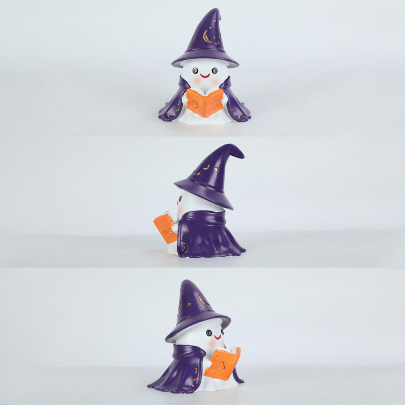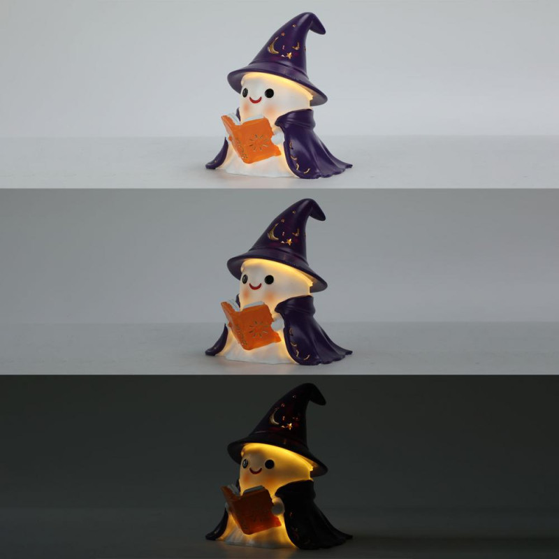 Description: Add a touch of whimsy and warmth to your space with this charming night light. Crafted from safe and eco-friendly resin material, this lamp features a smooth surface and a delightful ghost design wearing a wizard hat adorned with moon and stars. The ghost holds a book with a sun pattern and emits a soft, warm light, perfect for creating a cozy atmosphere in any room. Ideal for Halloween decoration, this cute and practical light is versatile and can be placed on a desktop or bedside table. Whether in the home living room, children's room, or as party decor, this festive piece adds fun and comfort to any setting.
