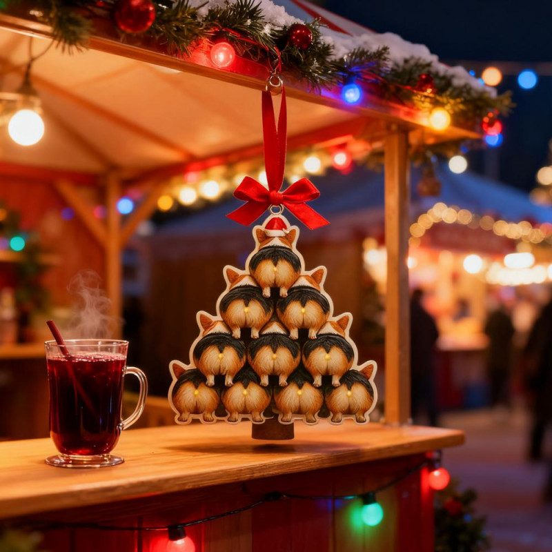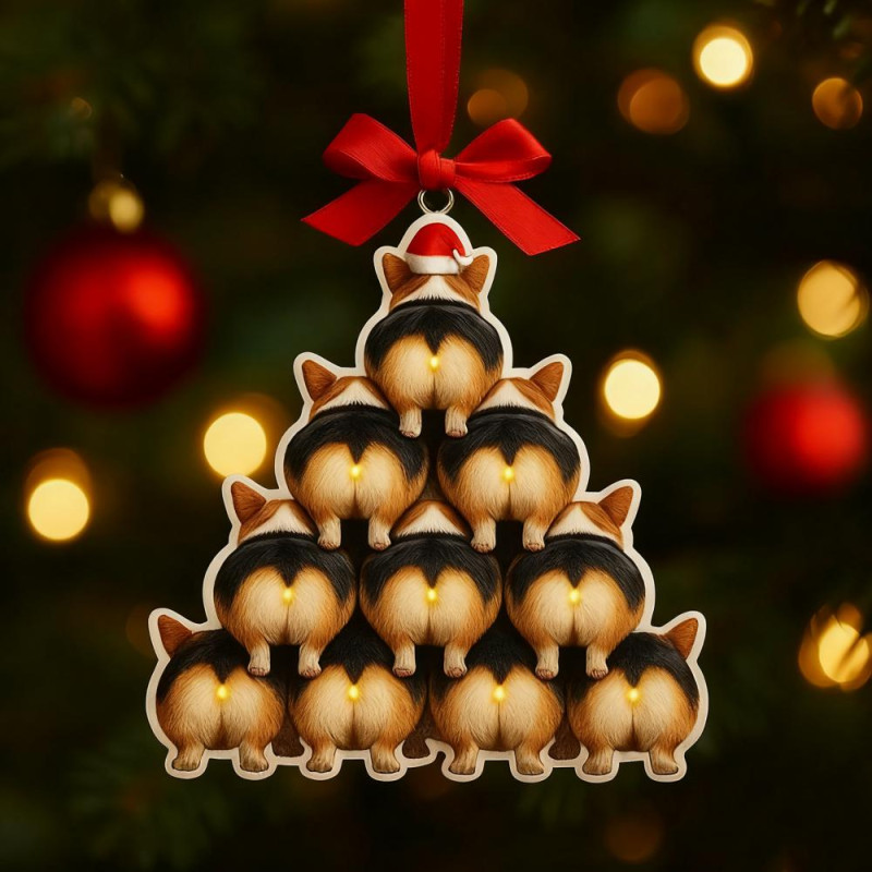 Corgi Butt Christmas Ornament 2D Acrylic Funny Dog Butt Stacking Xmas Tree Shaped Pendants for Tree Car Home Hanging Decor