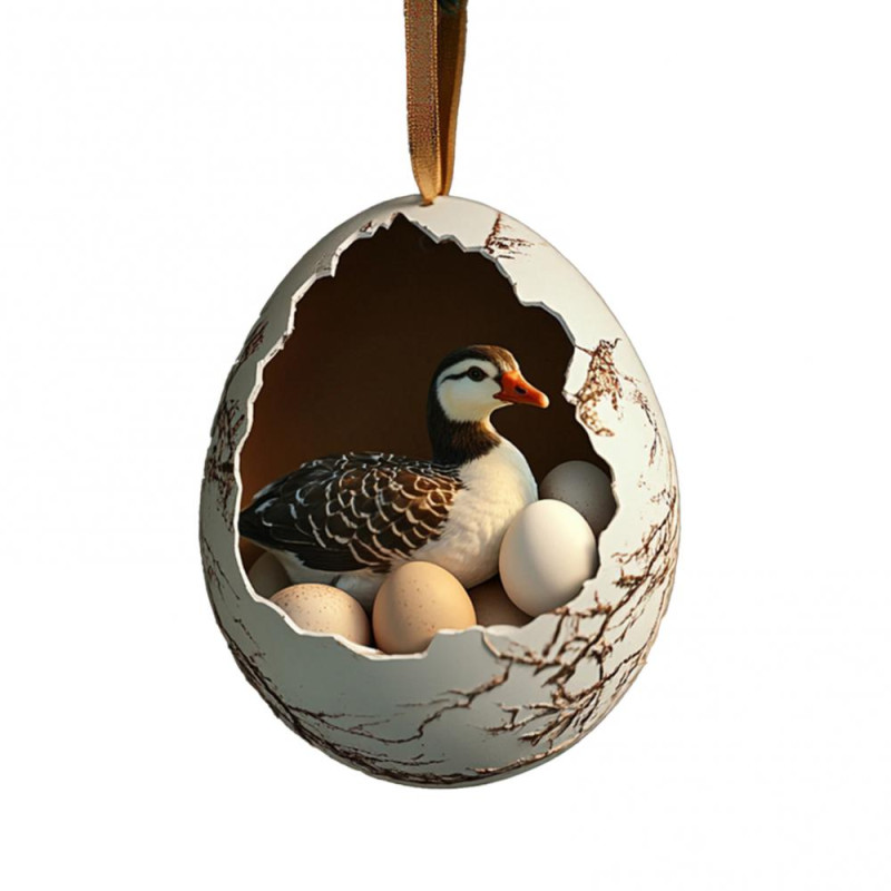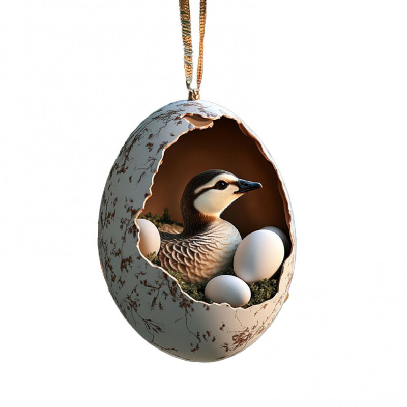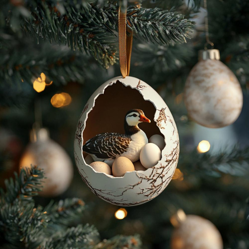 Christmas Ornament Acrylic Animal Egg Tree Pendant 2D Chicken Duck Turtle Eggshell Farm Decorations Holiday Gift for Family Friends