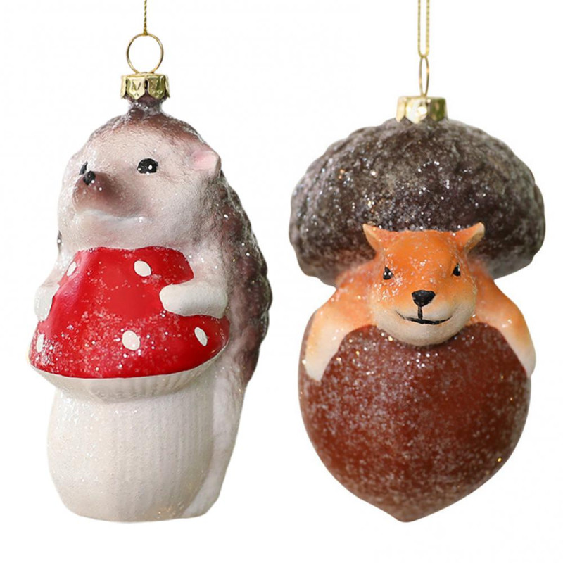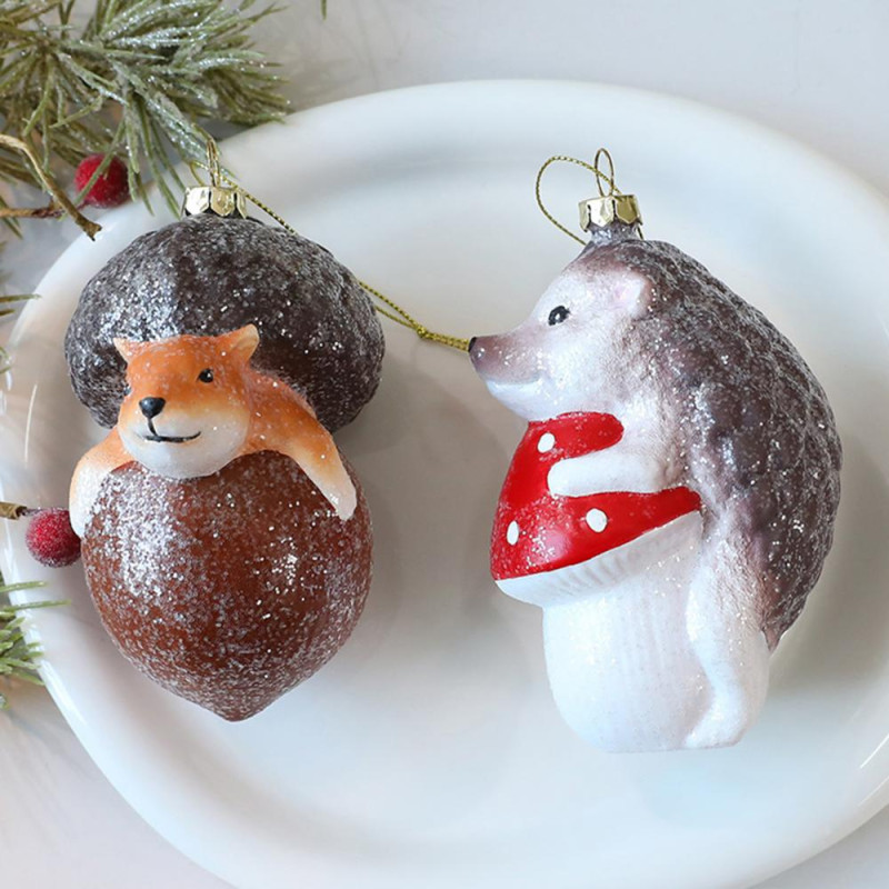 Christmas Tree Decoration Squirrel Hedgehog Christmas Ball Ornaments Xmas Holiday Decor for Home Table Fireplace Office