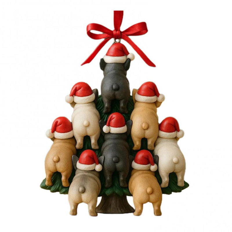Funny Dog Butt Christmas Ornament Acrylic Bulldog Dog Butt Stacking Christmas Tree Hanging Decoration for Car Home Holiday Party Decor