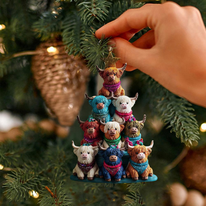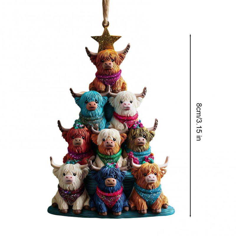 Highland Cow Christmas Ornament 2D Acrylic Christmas Car Ornaments Festive Themed Hanging Decor for Rearview Mirror Tree & Holiday Home Display