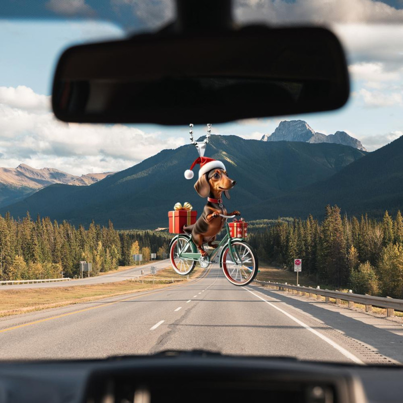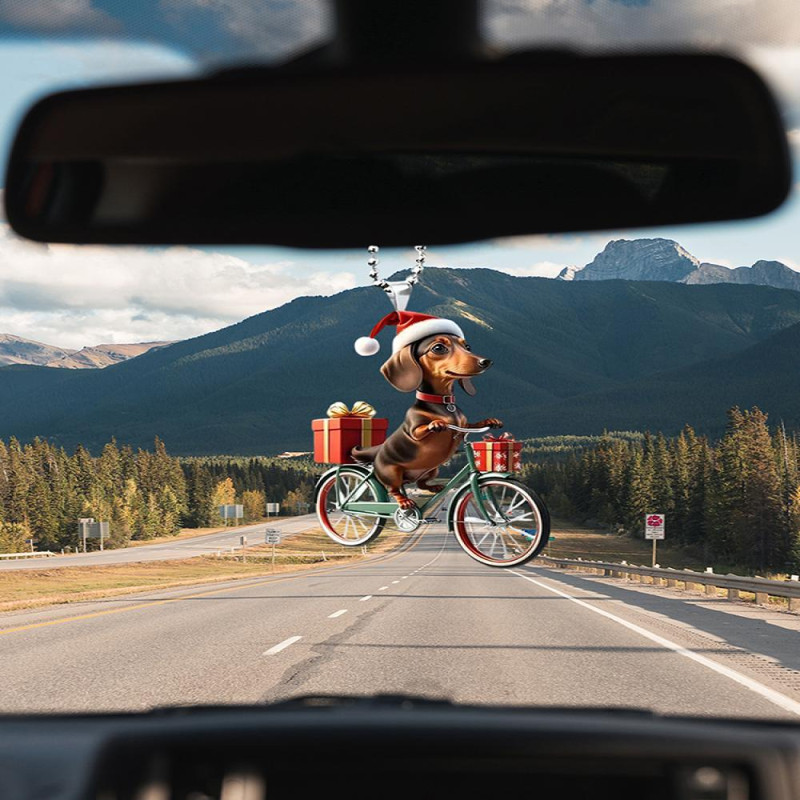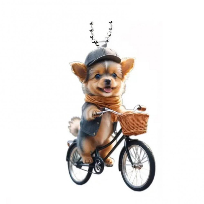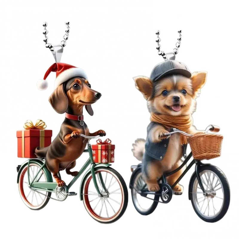 Christmas Ornament Funny Bicycle Dog Pendant Acrylic 2D Cartoon Animal Hanging Decoration for Xmas Tree Home Car Decor