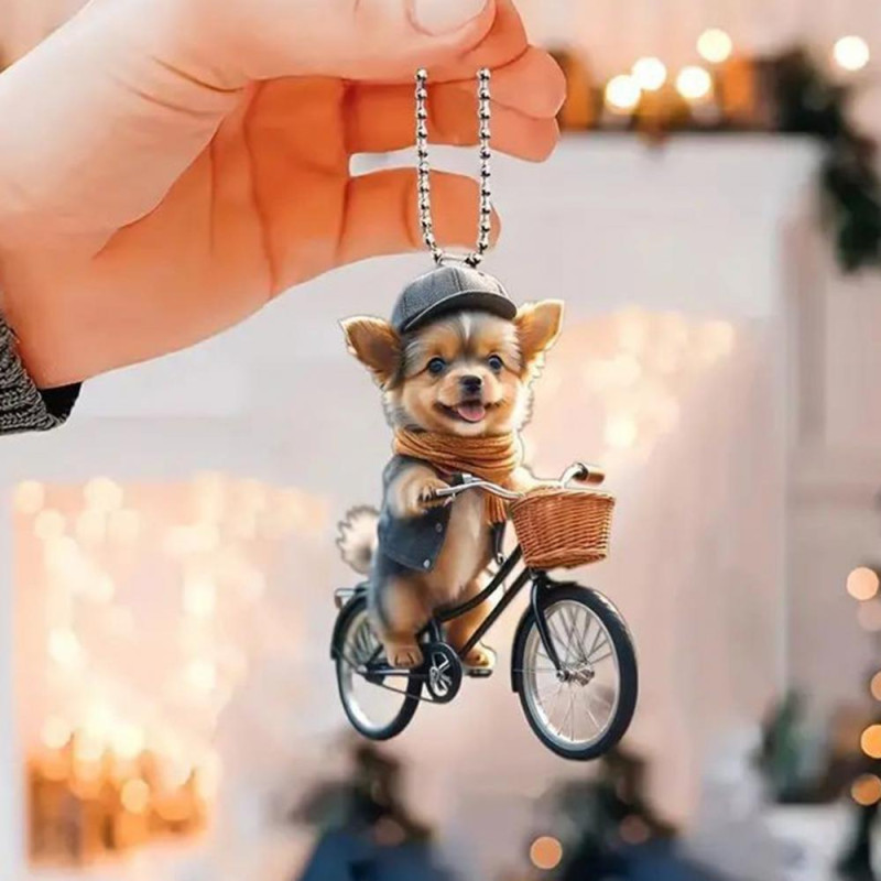 Lifelike Puppy Design: Crafted from durable acrylic, this ornament features a charming puppy riding a bicycle, adding a whimsical touch to any space.