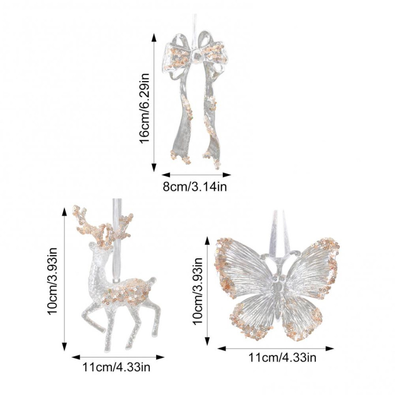 Description: Add a touch of elegance to your Christmas decor with our exquisite Christmas ornaments. Crafted from high-quality glitter material and sequins, these ornaments are durable and maintain their luster for a long time. The convenient white ribbons make hanging them a breeze, perfect for adorning Christmas trees, doors, windows, and walls effortlessly. With a variety of shapes including snowflakes, ballet dancers, deer, butterflies, and stars embellished with golden sequins, these ornaments are sure to catch the eye and create a festive ambiance. Choose from a wide range of styles to suit your decoration needs, whether for a cozy home setting or grand displays in shopping malls or event venues. These ornaments are the perfect addition to your holiday decorations, instantly infusing your space with Christmas cheer and warmth. Elevate your festive decor with these charming accessories that bring a touch of magic to your celebrations.