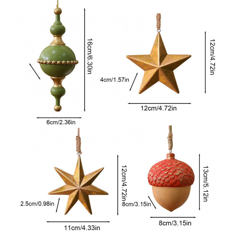 Diverse Styles for All Tastes: From rustic acorn shapes to luxurious golden stars, cater to different preferences effortlessly. Choose the perfect style to complement your unique Christmas theme.