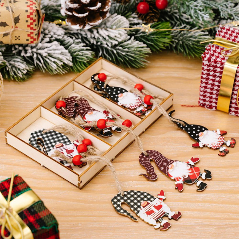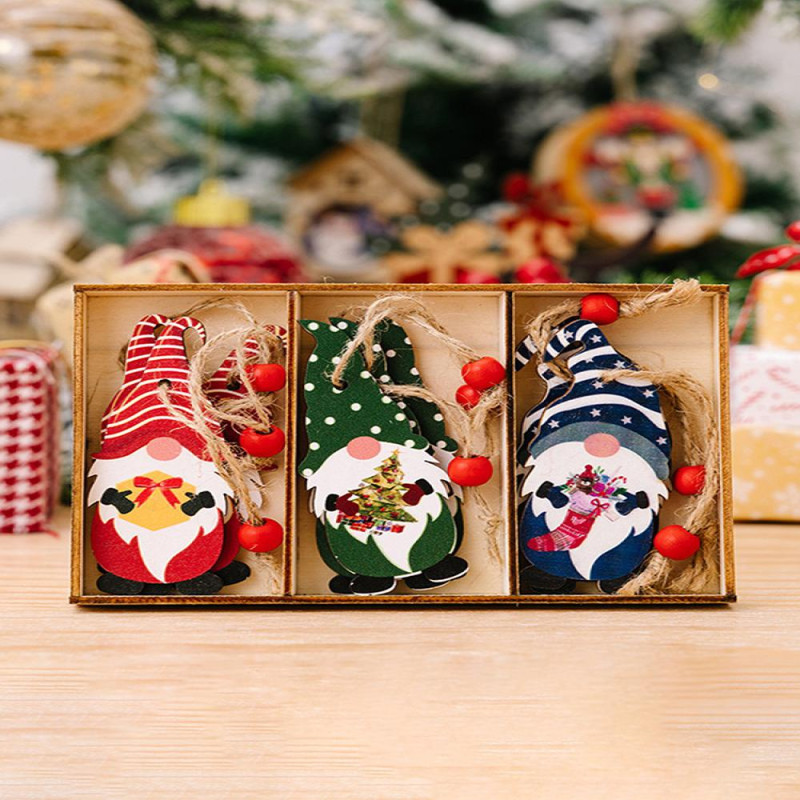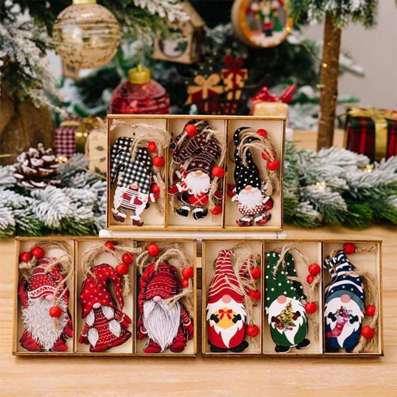 3 Pcs Christmas Gnome Ornaments Vintage Gnome Elf Wooden Hanging Decoration for Holiday Xmas Party Supplies