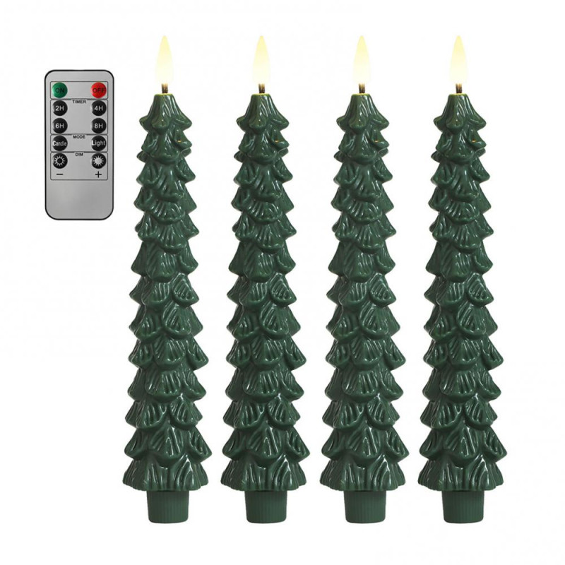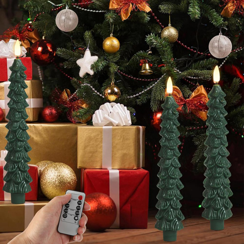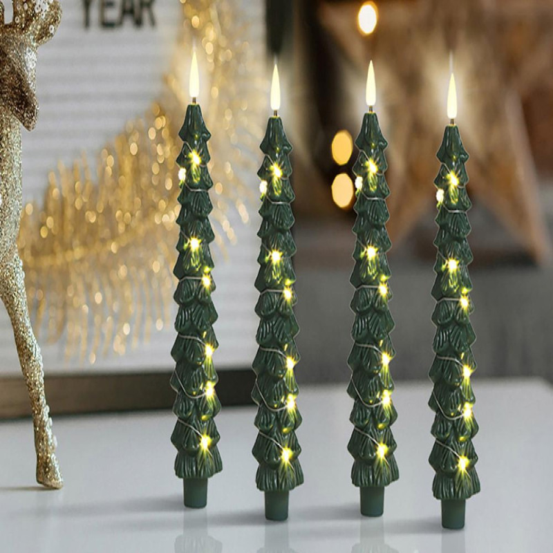 4Pcs LED Flameless Christmas Tree Taper Candles with Remote Control 3D Flame Flickering Window Candlesticks Set