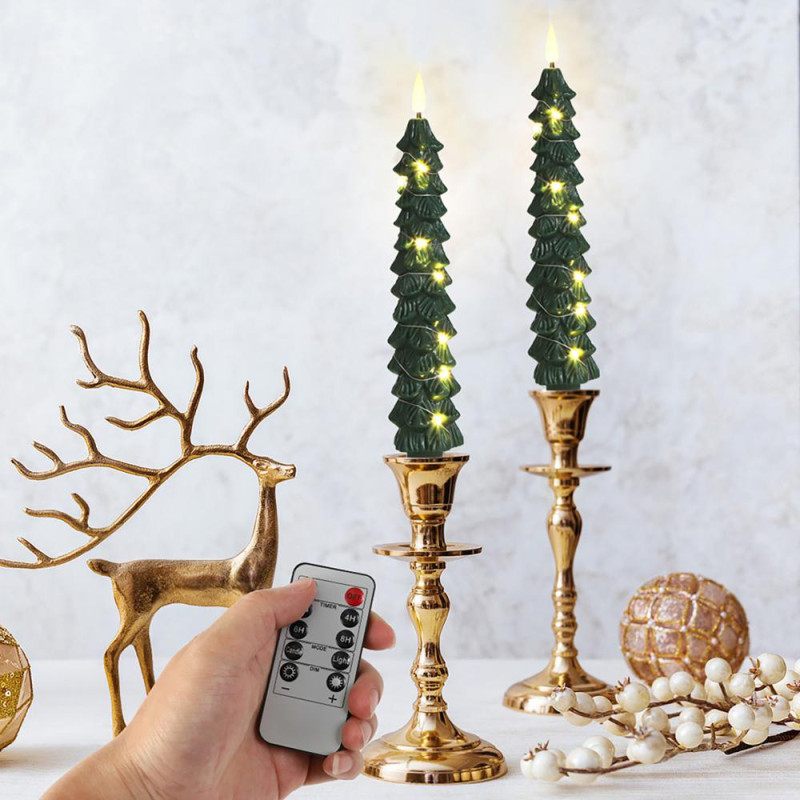 Description: Enhance your Christmas decorations with these led Christmas candle lights. The realistic design features unique battery-powered candlesticks with a flickering 3D bulb flame, perfect for adorning windowsills, fireplaces, and dining tables. Whether it's a festive family gathering or a peaceful moment alone, these LED conical candles instantly elevate the holiday ambiance. They also make special gifts for Christmas, birthdays, and party hosts. Equipped with a remote control and non-slip rubber bottom, these candles offer convenience and safety. Adjust the brightness among 5 levels, choose from normal or flashing mode, and set the timer for 2/4/6/8 hours. The real wax construction and 3D flame design provide an authentic look without smoke or dripping wax, adding a touch of elegance to your decor. Each pack includes 4 flameless Christmas tree cone candles measuring 0.8 inches in diameter and 10 inches in height. Powered by 2 AAA batteries each (not included), these candles come with 2 remote controls and an operation manual. Ideal for Christmas, parties, shop decorations, and more, these LED candle lights are a must-have for creating a warm and inviting atmosphere.