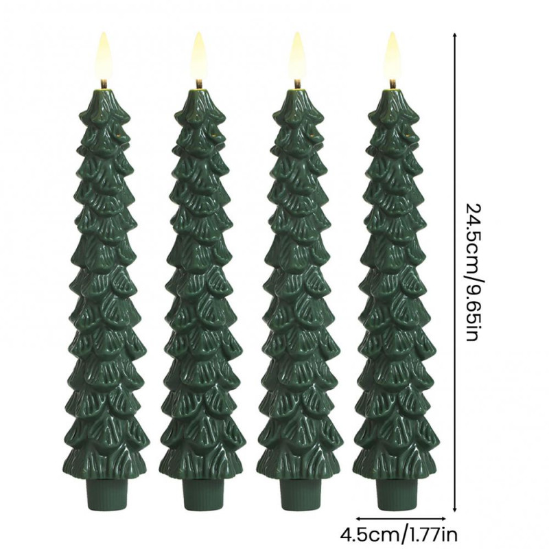 Versatile Usage: Each pack includes 4 flameless Christmas tree cone candles measuring 0.8 inches in diameter and 10 inches in height, making them ideal for various occasions such as Christmas gatherings, birthday celebrations, or enhancing shop decorations. They also make thoughtful gifts for loved ones.