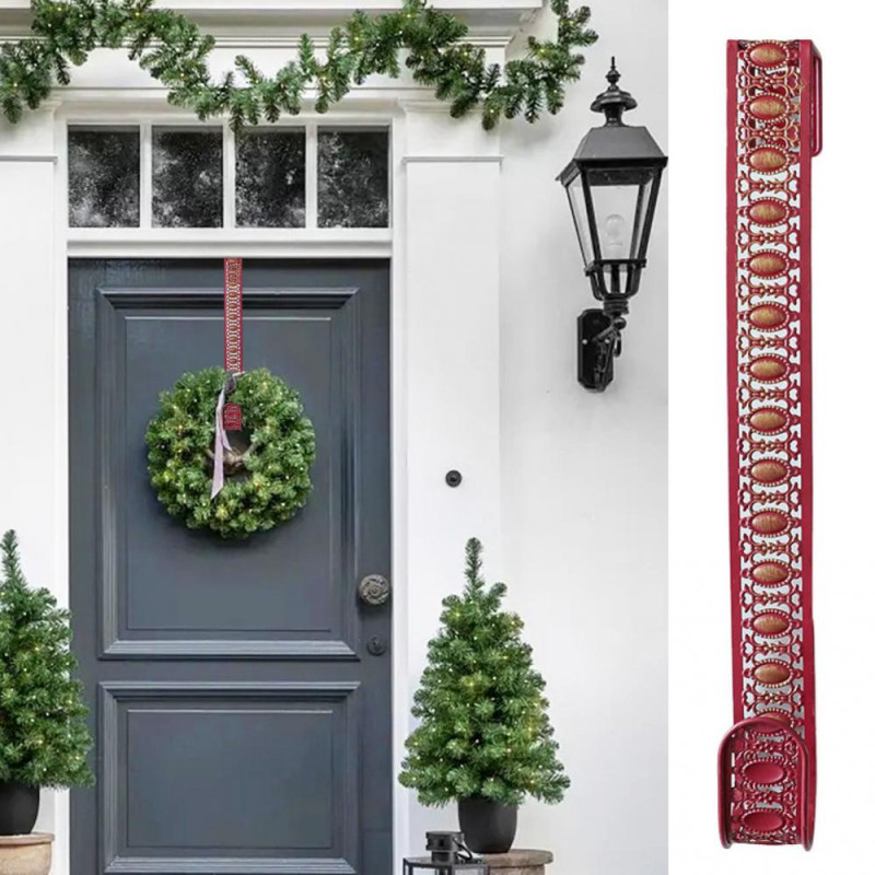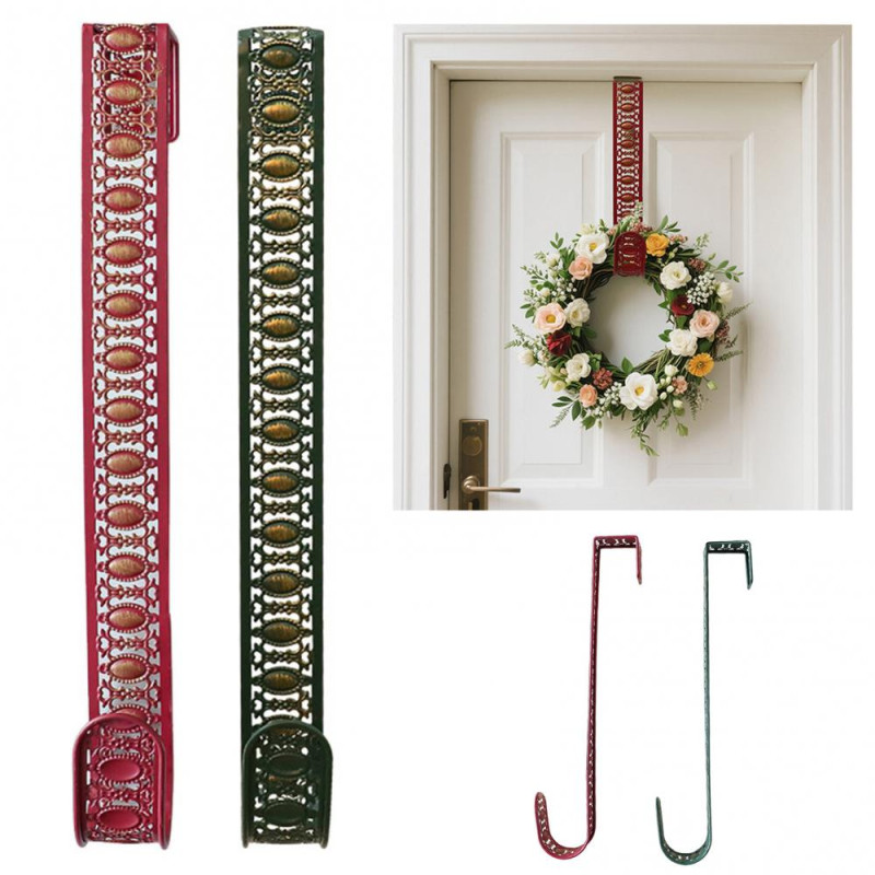 Description: Introducing the durable wreath hanger, crafted from solid metal for long-lasting use without deformation. Its hook-type design allows for easy installation on door edges, eliminating the need for complex operations. The exquisite hollow pattern and vibrant colors enhance the decor of doors, garlands, and more. Versatile in functionality, it can hold garlands, pendants, and accessories to suit various decorative needs in different settings. With festive colors like red and green, this hanger effortlessly creates a joyful atmosphere, perfect for celebrations such as Christmas. Elevate your space with this versatile and decorative wreath hanger.
