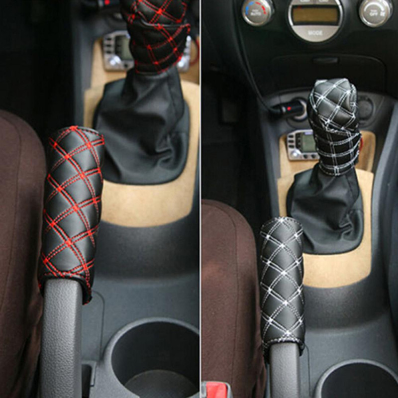 Car Faux Leather Gear Shift Knob Cover Hand Brake Cover Sleeve 2 in 1 Set