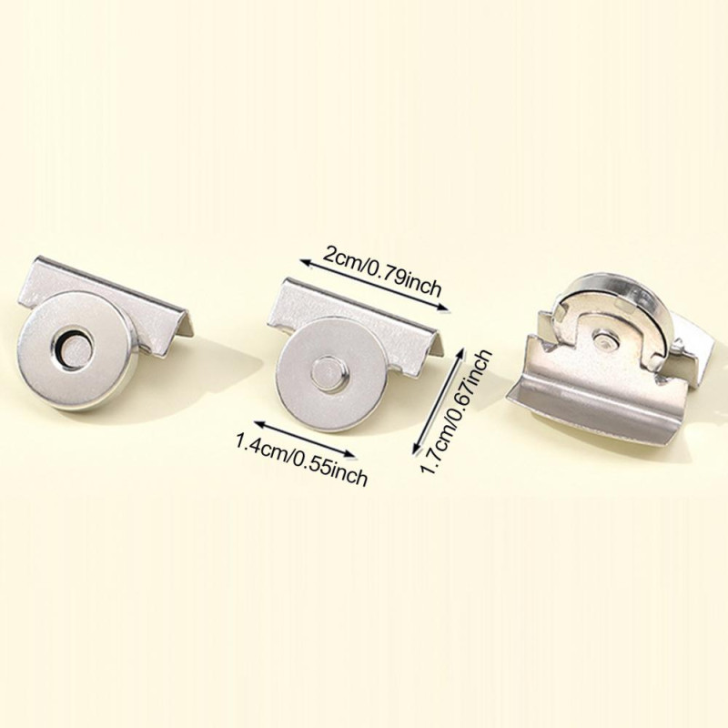 Item Name: Snap Material: Metal, Magnet Features: Long-lasting, No-sew Installation, Versatile Applications Size Details: Length: 2cm/0.79" (Approx.) Width: 1.7cm/0.67" (Approx.) Diameter: 1.4cm/0.55" (Approx.)