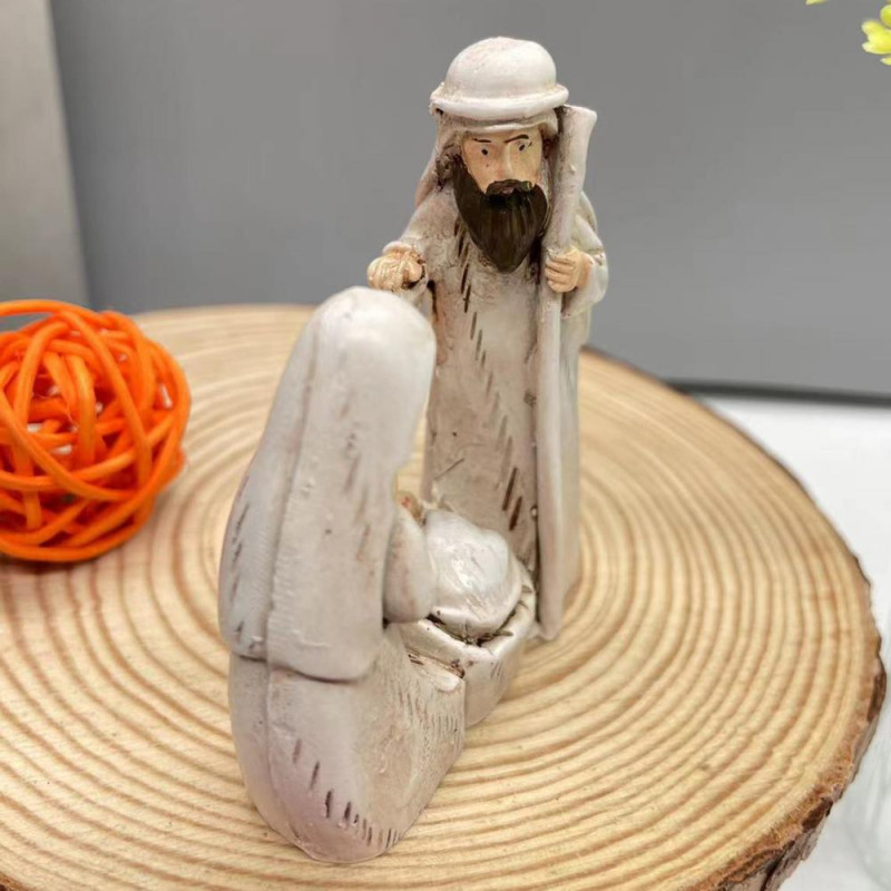 Item Name: Resin Ornament Material: Resin Features: Collectible Holy Family Figurine, Tabletop Ornament, Compact Size Details: Size: 6cm x 5.2cm/2.36" x 2.05" (Approx.)
