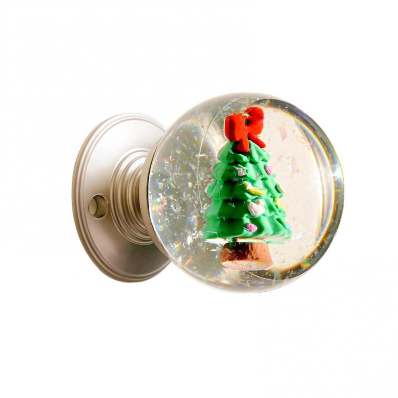 Christmas Door Knob Vintage Xmas Tress Santa Claus Transparent Faux Crystal Ball Decorative Bedroom Front Door Handle Replacement