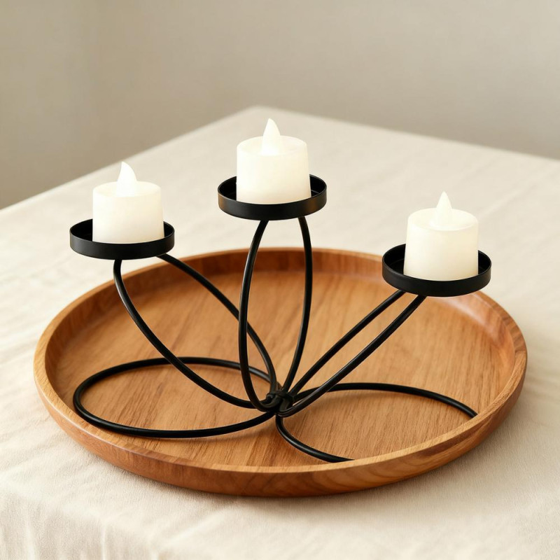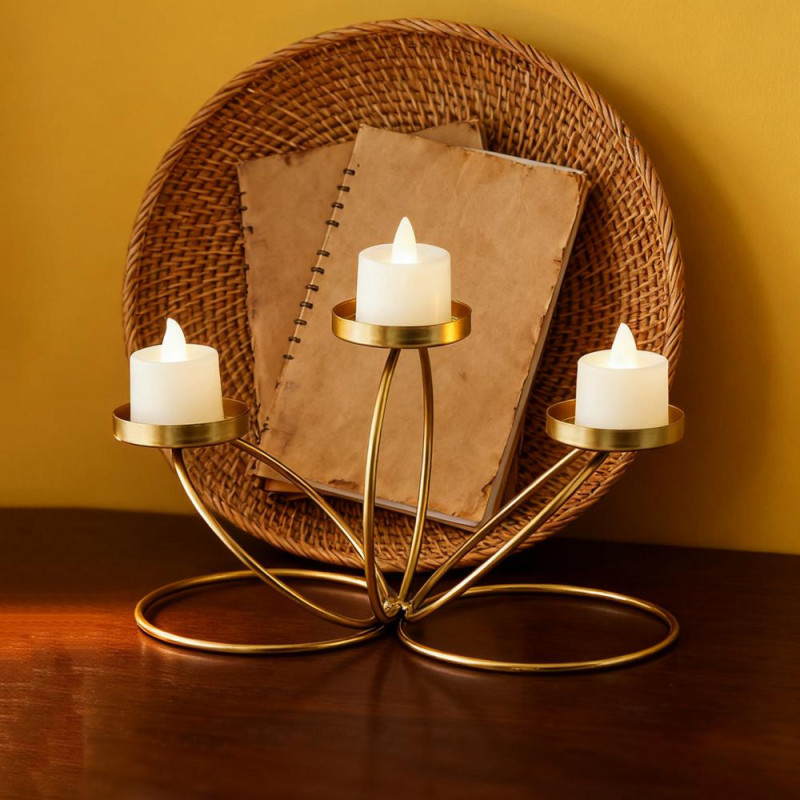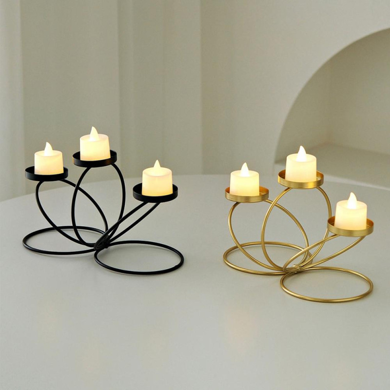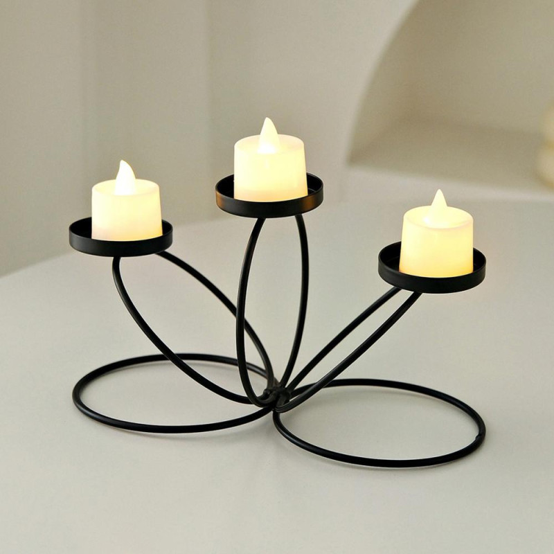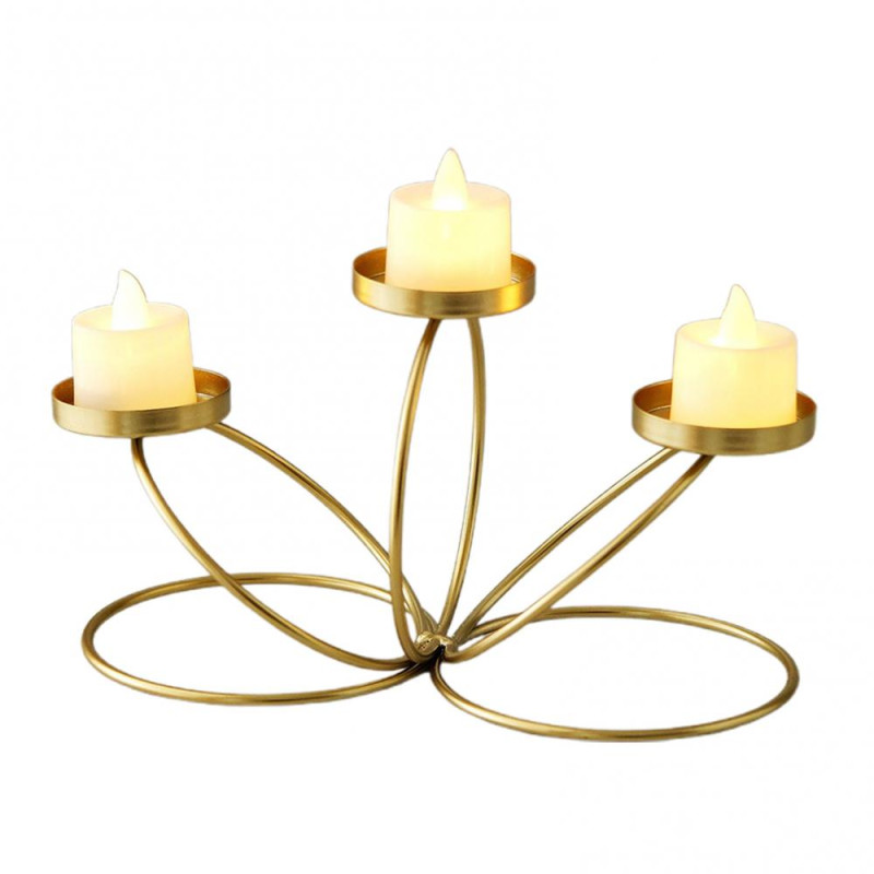 Cast Iron Candle Holder Decoration Home Office Living Room 3-Arm Candlestick Metal Tealight Candle Stand Dining Table Centerpiece Ornament