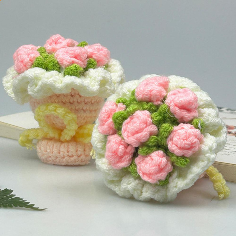 Miniature Beauty: Delight in the beauty of the mini-sized crochet floral bouquet, perfect for adorning dining tables, cars, desks, or bedrooms. Its intricate craftsmanship and lifelike appearance make it a standout decorative piece that exudes charm and uniqueness. Handcrafted Elegance: Each crochet floral bouquet is meticulously hand-woven, ensuring a unique and elegant touch to your decor. Crafted by skilled artisans, these bouquets boast high collection value and exquisite detailing. Versatile Decor: Perfect for both indoor and outdoor settings, these artificial flower bouquets bring warmth and vibrancy year-round. Ideal for various spaces like homes, offices, hotels, schools, and more, they add a pop of color and life to any environment. Timeless Charm: Experience everlasting beauty with these crochet floral bouquets that are expertly woven to resist fading. Unlike real flowers that wilt, these bouquets remain perpetually bright and odorless, making them an enduring symbol of love and appreciation. Thoughtful Gifting: Show your affection with these hand-woven rose bouquets that make exceptional gifts for various occasions. Whether it's birthdays, anniversaries, holidays, or celebrations, these decorative gifts are a heartfelt way to express love and gratitude.