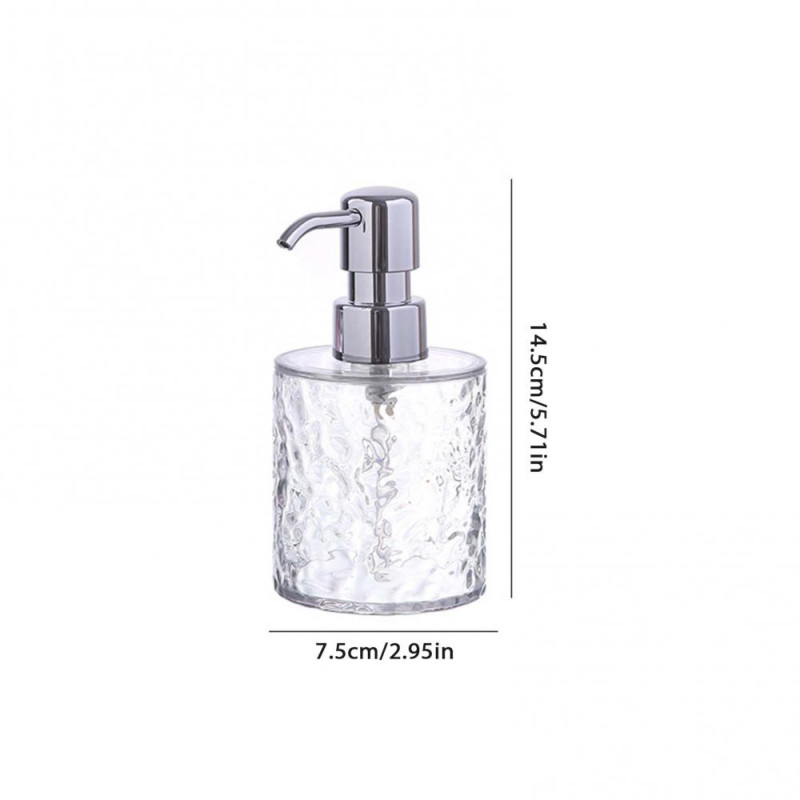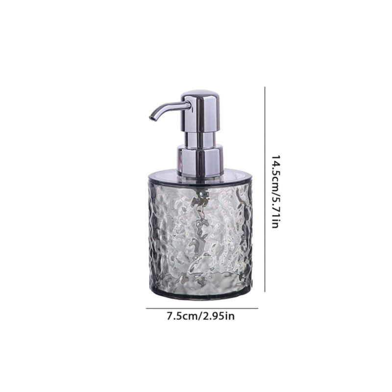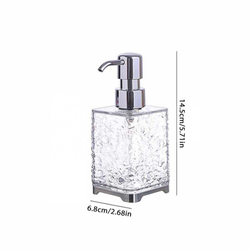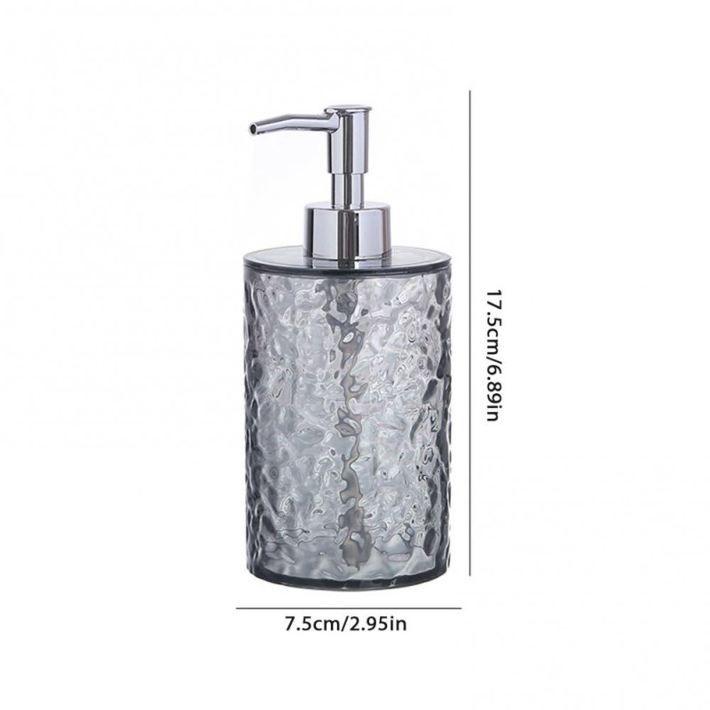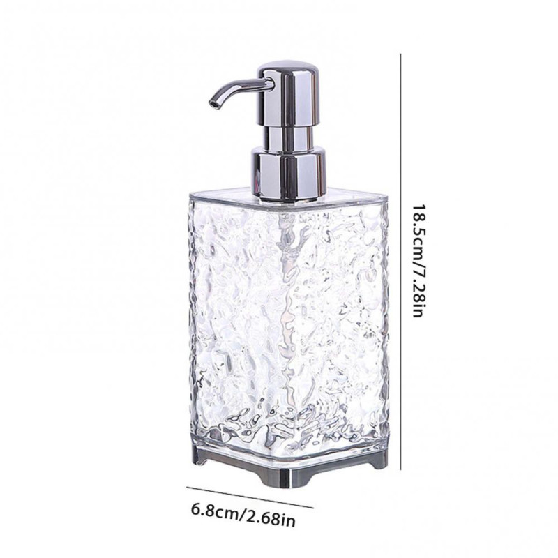 Item Name: Soap Dispenser Material: PET, PP, ABS Capacity: S: 300ML, L: 400ML Features: Ripple Design, Large Capacity, Multi-functional Size Details: Round S, Diameter: 7.5cm/2.95", Height: 14.5cm/5.71" (Approx.) Round L, Diameter: 7.5cm/2.95", Height: 17.5cm/6.89" (Approx.) Square S, Diameter: 6.8cm/2.68", Height: 14.5cm/5.71" (Approx.) Square L, Diameter: 6.8cm/2.68", Height: 18.5cm/7.28" (Approx.)