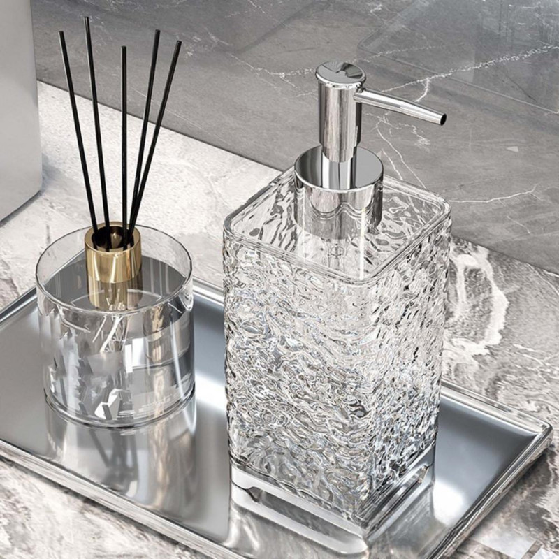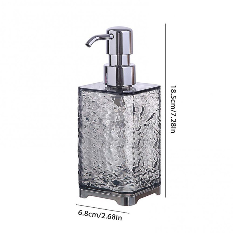 Description: This soap dispenser offers a moderate capacity for convenient management, designed to facilitate replenishment and meet daily use needs while saving resources. Made of durable plastic, it is suitable for high-frequency use in hotels and other settings, remaining light, durable, and easy to clean without deforming or aging over time. The water corrugated design not only adds a stylish touch but also enhances bathroom safety with its non-slip feature. Its space-saving press-type design is practical for installation in limited spaces, enhancing the overall beauty and functionality of hotel bathrooms. This environmentally friendly dispenser promotes sustainability by reducing waste through reusable bottling of lotions, hand sanitizer, and shower gel, making it ideal for eco-conscious hotels and families.