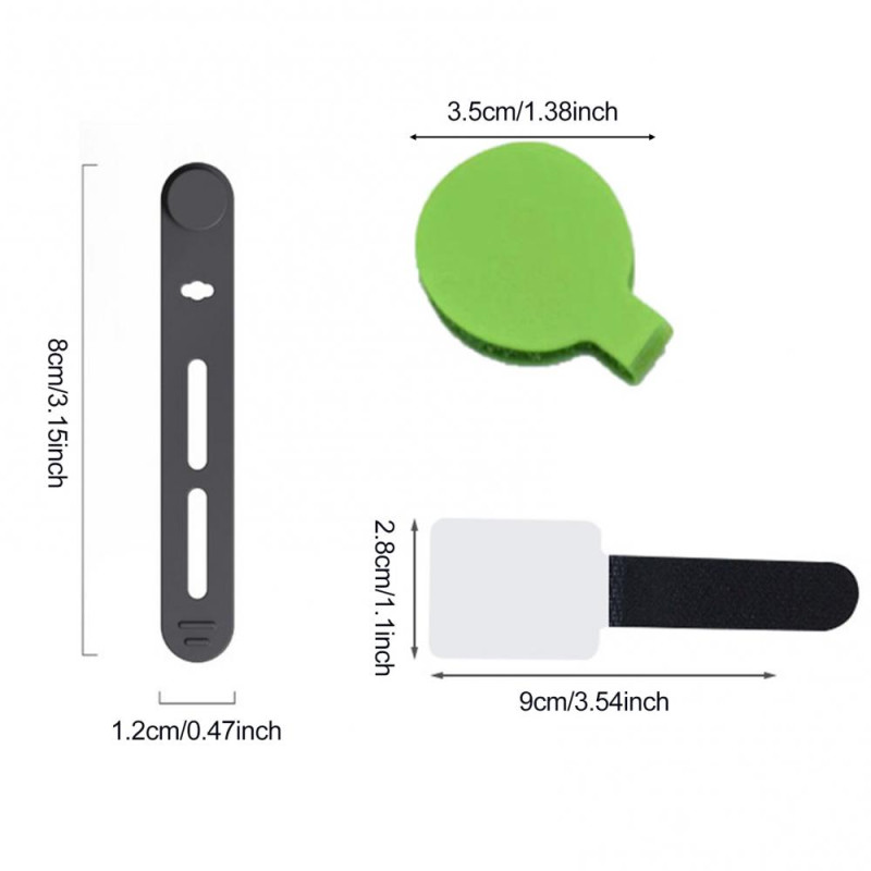 Item Name: Data Cable Tie Material: Silicone Features: Waterproof, Elastic Design, Versatile Organization Size Details: Tie: 8cm x 1.2cm/3.15" x 0.47" (Approx.) Sticker: 3.5cm/1.38" (Approx.) Cable Organizer: 9cm x 2.8cm/3.55" x 1.1" (Approx.)
