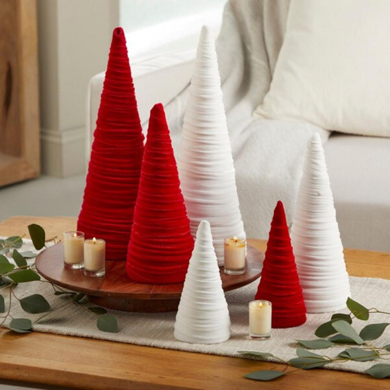 Versatile Festive Charm: Transform any space into a festive and romantic haven with these velvet Christmas cones; ideal for adorning dining tables during the holiday season, they infuse ordinary settings with an air of joy and celebration.