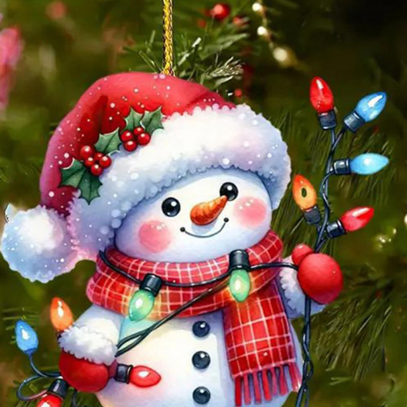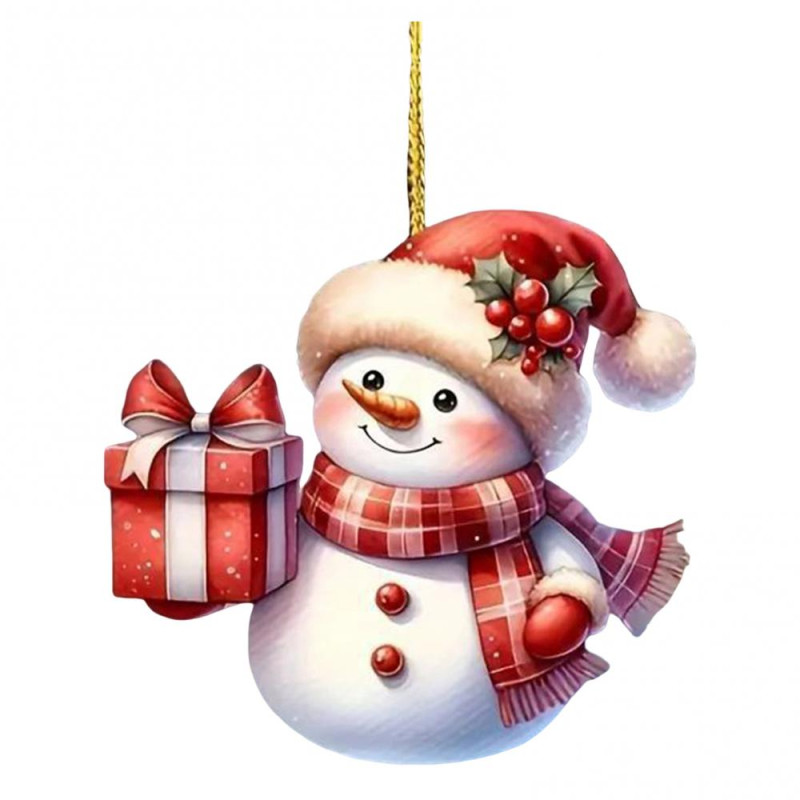 Snowman Christmas Tree Ornament Acrylic Cartoon Snowman Hanging Ornament for Car Rearview Mirror Window Christmas Tree Party Decor