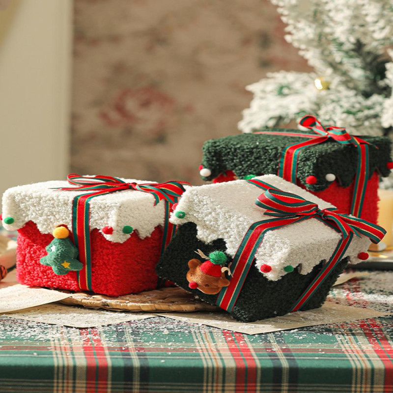 Christmas Gift Box Decoration Thick Velvet Gift Box with Bow Plush Xmas Candy Box for Holiday Home Garden Party Decor