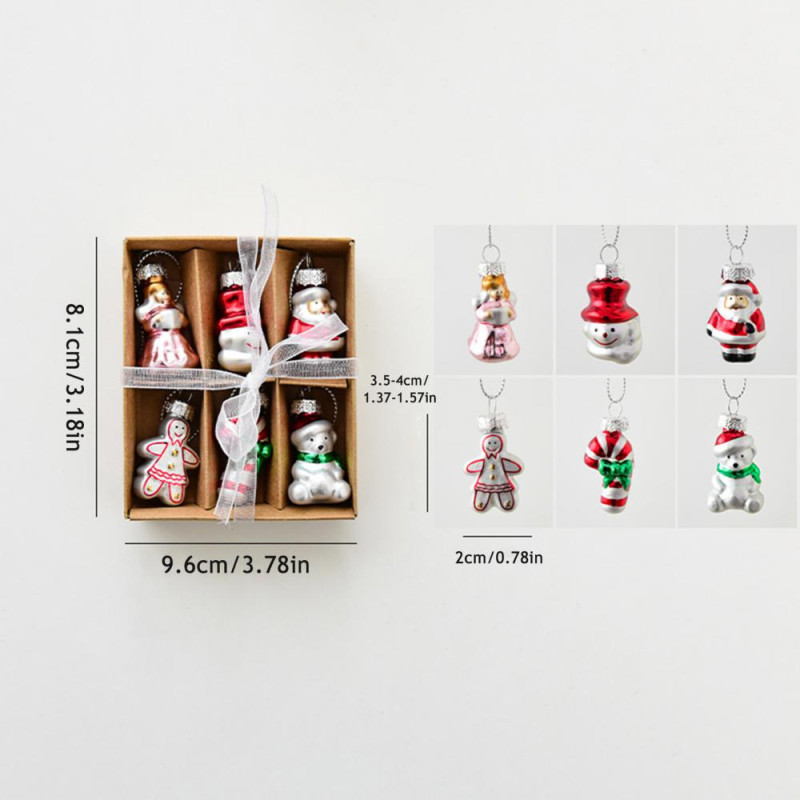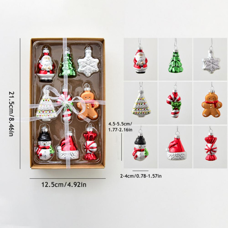 Christmas Mini Glass Ornaments Set Small Vintage Snowman Santa Tree Snowflake Candy Cane Ornaments for Xmas Tree Hanging Decor
