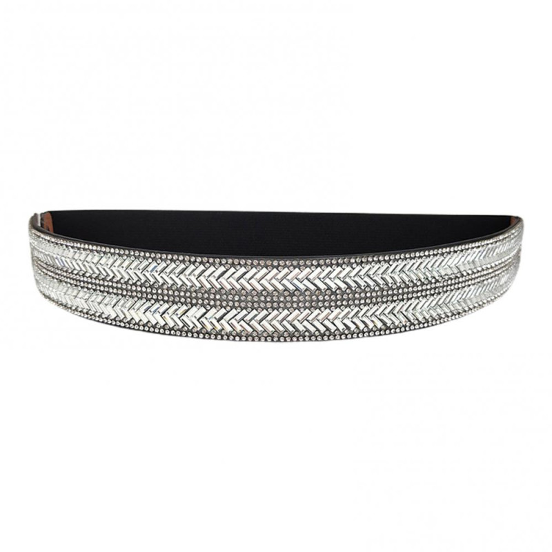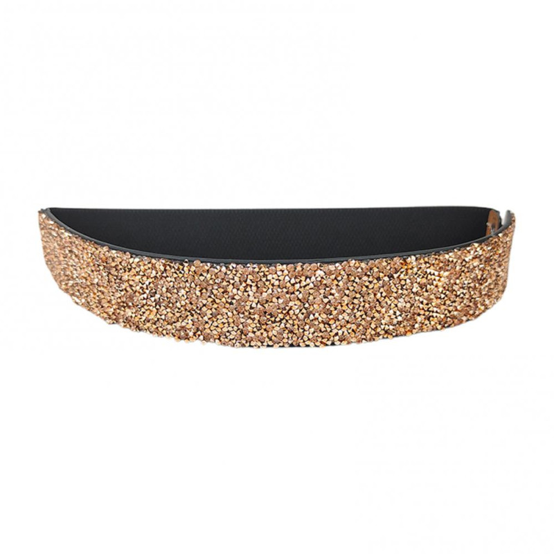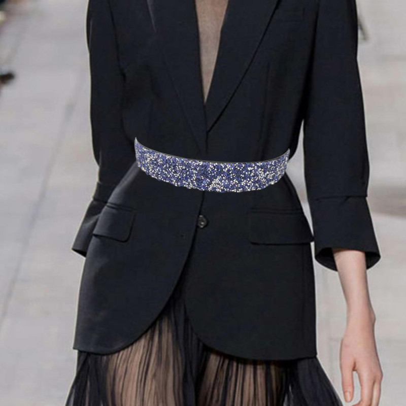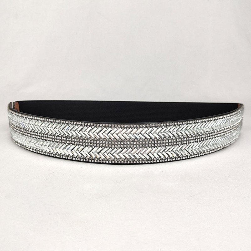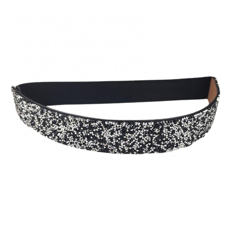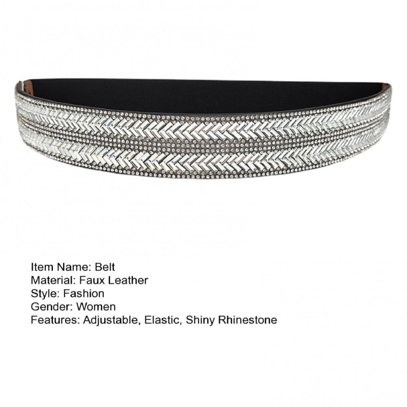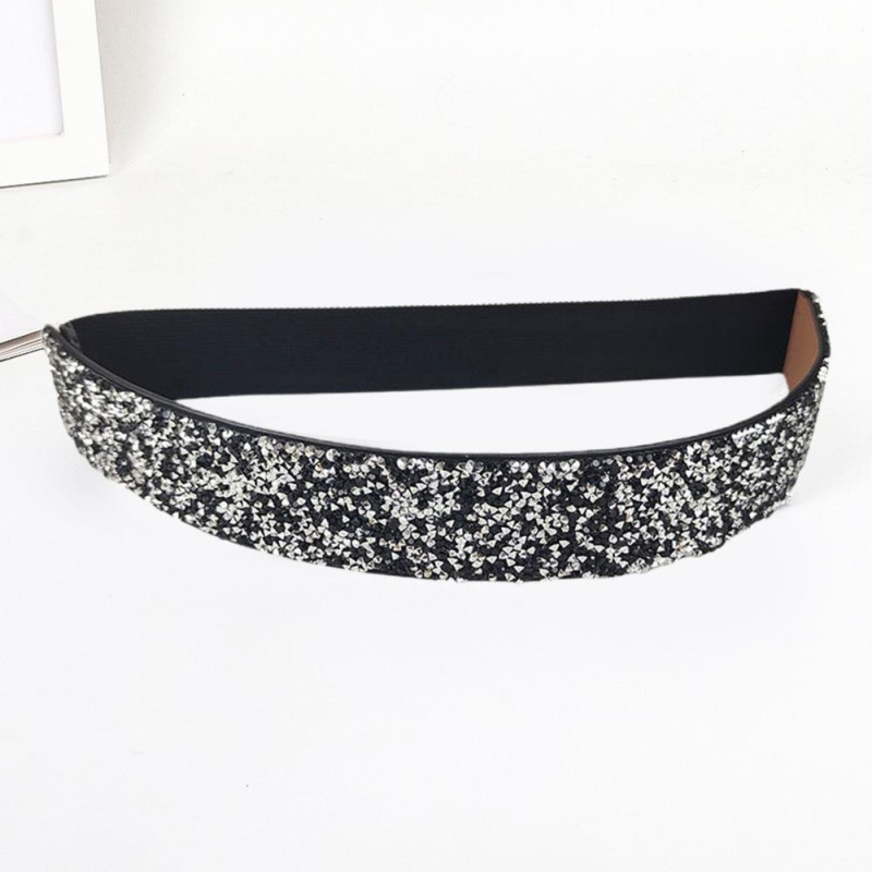 Women Belt Adjustable Elastic Band Shiny Rhinestone Wide Anti-slip Clothes Matching Anti-break Tight Waist Dress Waistband Clothes Accessory