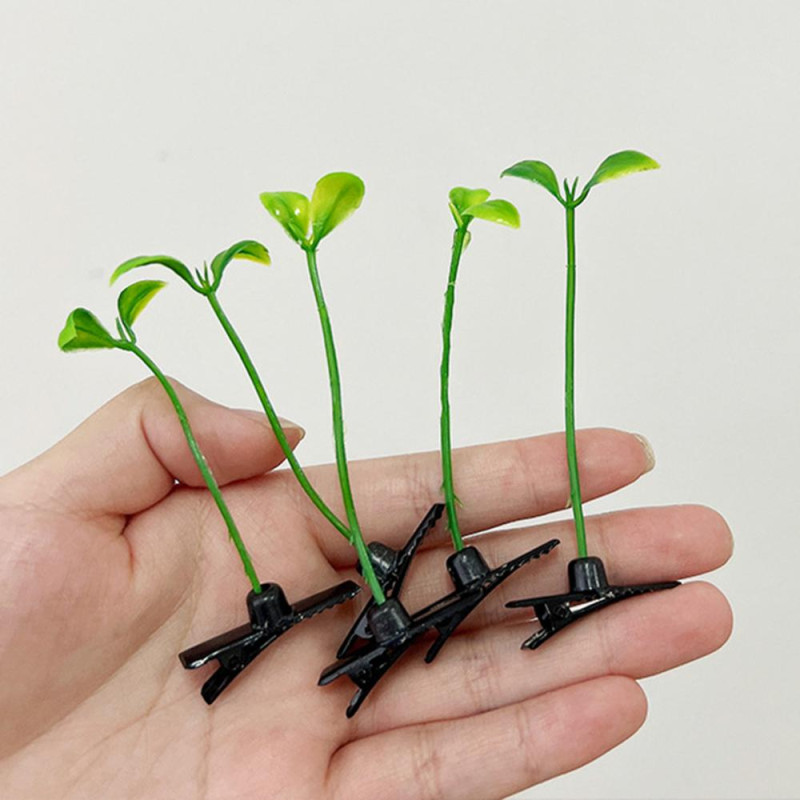 Realistic Hair Accessories: The set is designed in the shape of bean sprouts, bright and realistic, playful and cute, you can use plant hair clips to decorate the headband or hat, and it is also suitable for wearing alone on the hair.