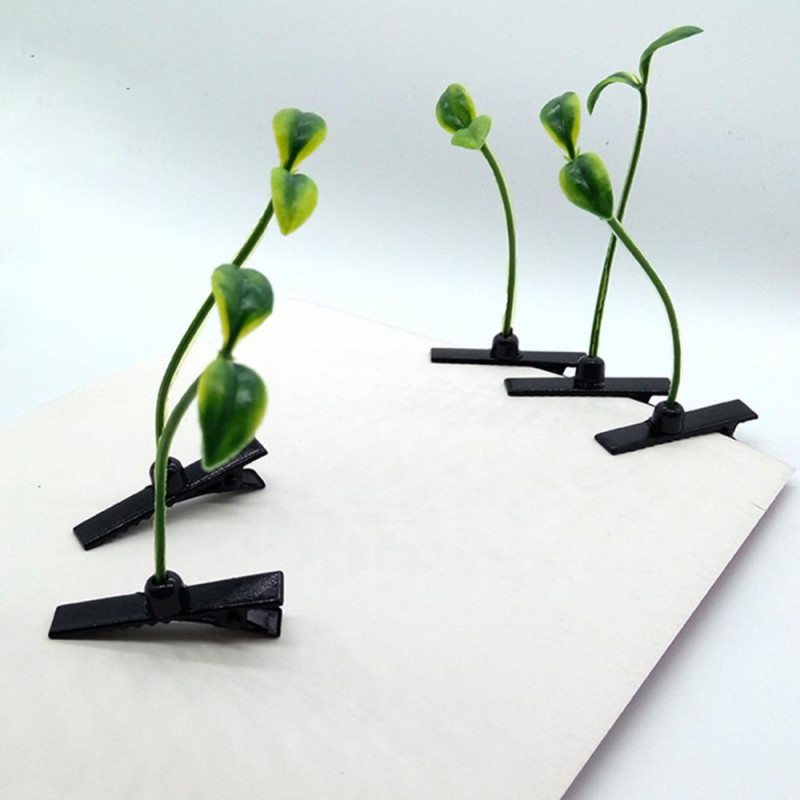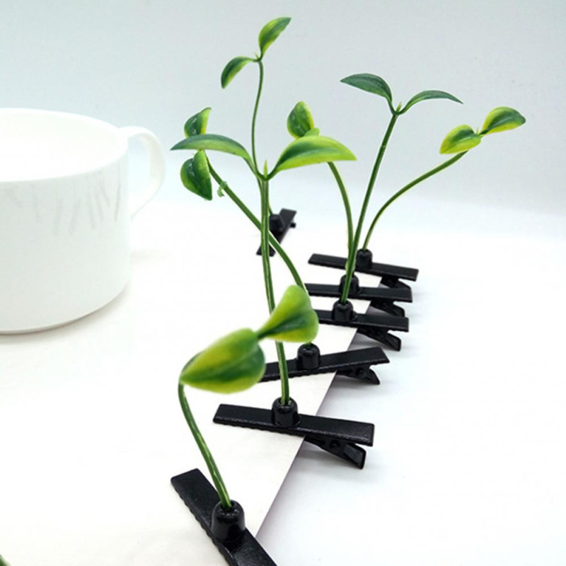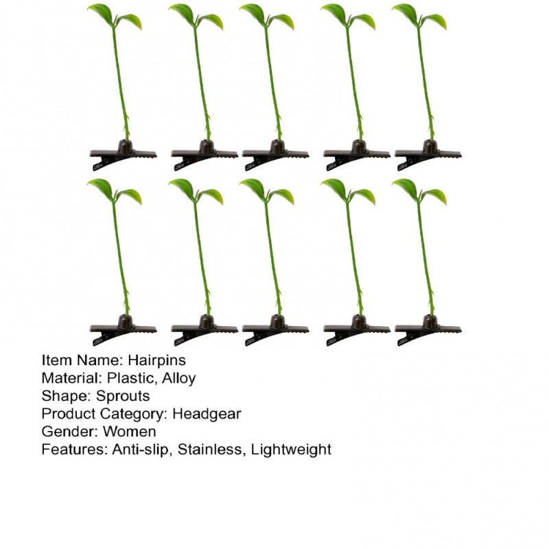 100 Pcs Bean Sprout Hair Clips Plant Hairpins Anti-slip Fake Leaf Funny Shape Long Green Sprout Decor Adult Children Hair Decoration Hair Clips