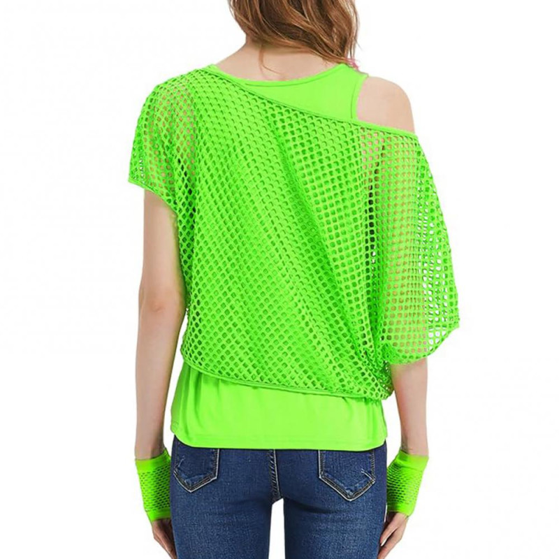 Description: Get ready to stand out at 80s and 90s themed parties with our Women's Mesh Shirt and Vest Set! Made from soft, stretchy polyester fiber and spandex, this set includes a vibrant neon mesh shirt and a summer vest in eye-catching colors. The two-piece design allows for versatile styling, and the set is available in 4 sizes to ensure a perfect fit for women of all sizes. Perfect for Halloween, rave parties, stage shows, and more, this retro outfit is sure to make you the center of attention. Mix and match with other 80s accessories for a complete look.