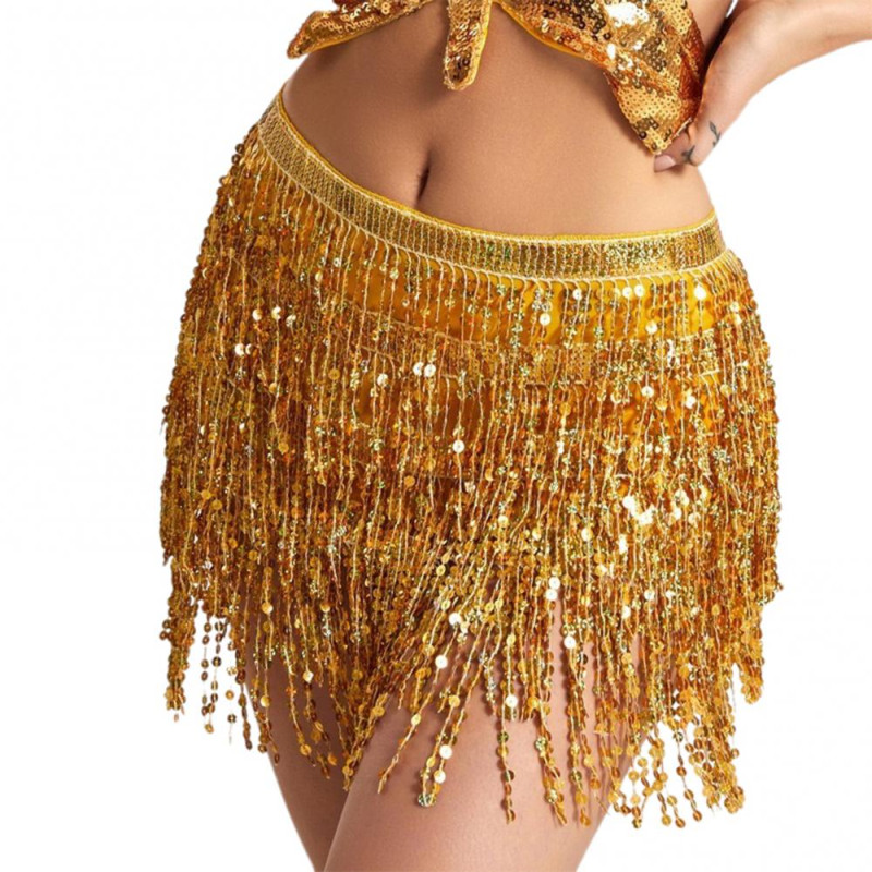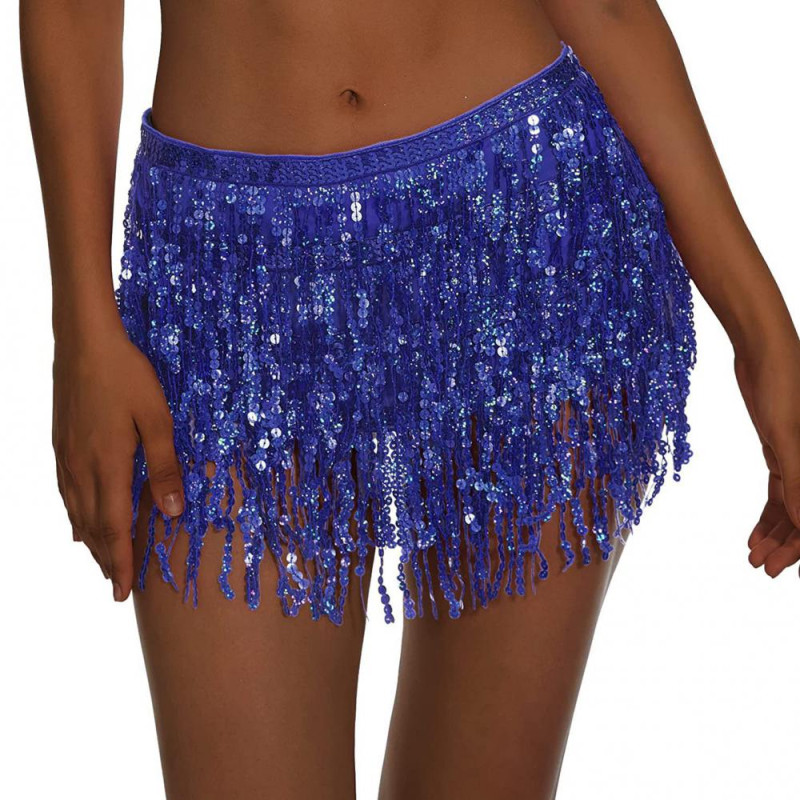 Belly Dance Sequin Tassel Skirt Sparkling Glitter Rave Fringe Mid-rise Skirt Solid Color Dance Parties Performances Skirt