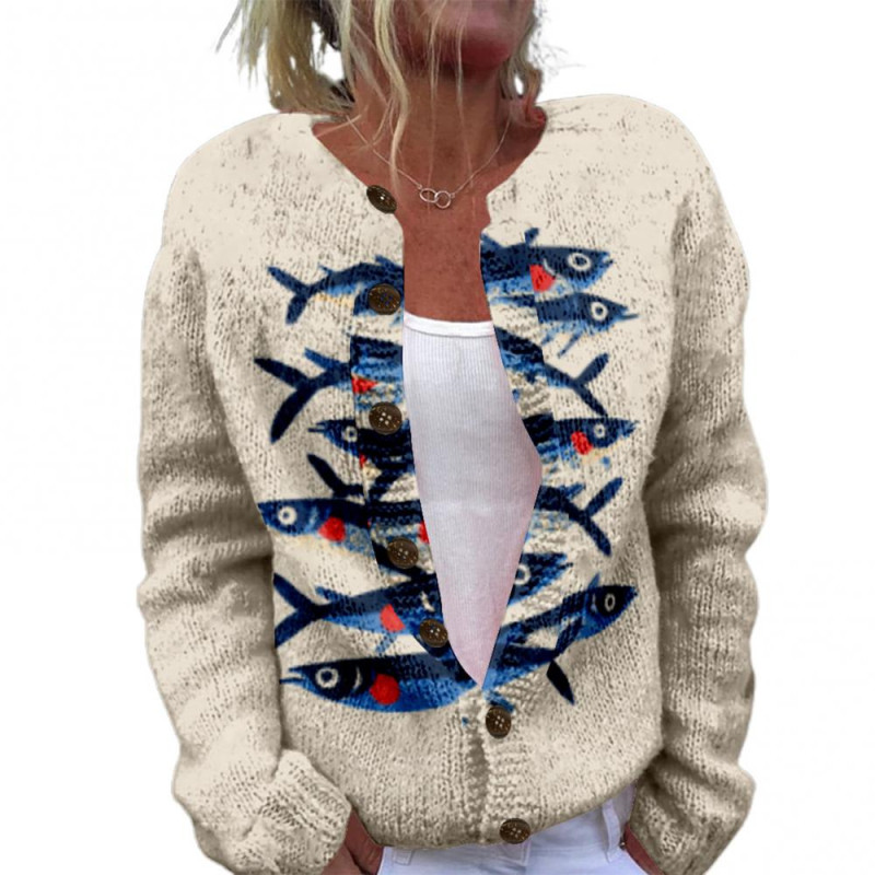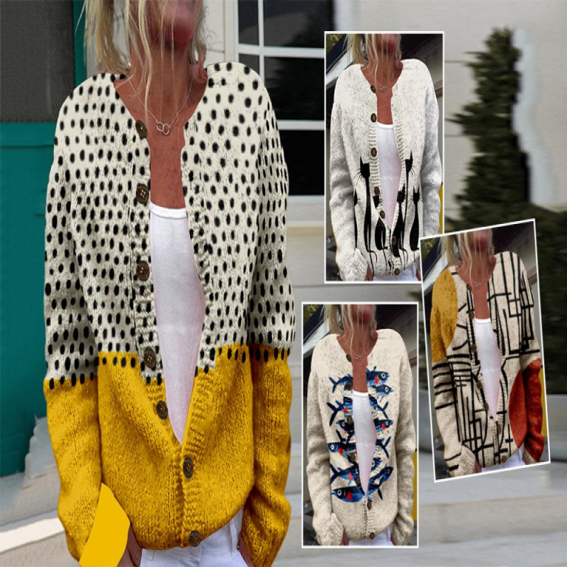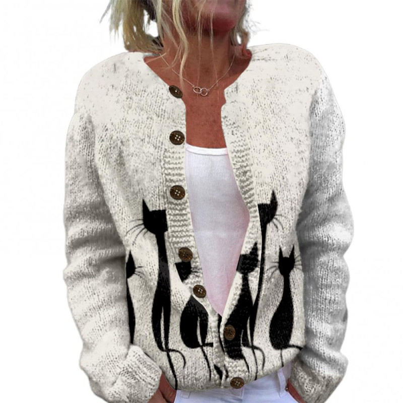 Item Name: Sweater Coat Material: Polyester Style: Simple Gender: Women Size Type: Regular Collar Type: Round Neck Sleeve Length: Long Sleeves Length: Regular Features: Loose Fit, Animal Pattern, Buttons Closure Size Details: Size: S, Bust: 105cm/41.34", Clothes Length: 68cm/26.77", Sleeve: 60cm/23.62", Shoulder: 44cm/17.32" (Approx.) Size: M, Bust: 110cm/43.31", Clothes Length: 69cm/27.17", Sleeve: 61cm/24.02", Shoulder: 45.5cm/17.91" (Approx.) Size: L, Bust: 115cm/45.28", Clothes Length: 70cm/27.56", Sleeve: 62cm/24.41", Shoulder: 47cm/18.5" (Approx.) Size: XL, Bust: 120cm/47.24", Clothes Length: 71cm/27.95", Sleeve: 63cm/24.8", Shoulder: 48.5cm/19.09" (Approx.) Size: XXL, Bust: 125cm/49.21", Clothes Length: 72cm/28.35", Sleeve: 64cm/25.2", Shoulder: 50cm/19.69" (Approx.)