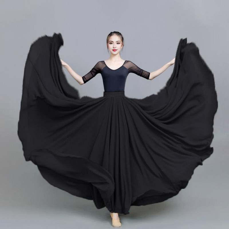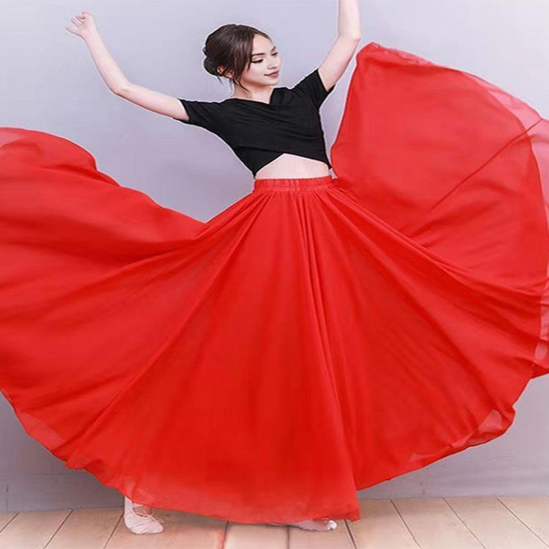 Women Chiffon Large Skirt 720 Degree Pull Double-Layered Maxi Skirt Solid Color Flowy Dance Skirt Versatile Dancewear