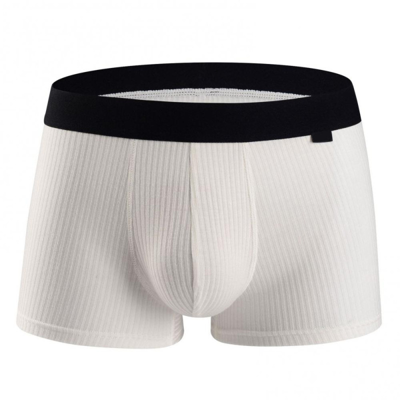 Men Boxer Underwear Mid-Waist U-Convex Ribbed Shorts Panties Breathable Elastic Comfortable Underpants
